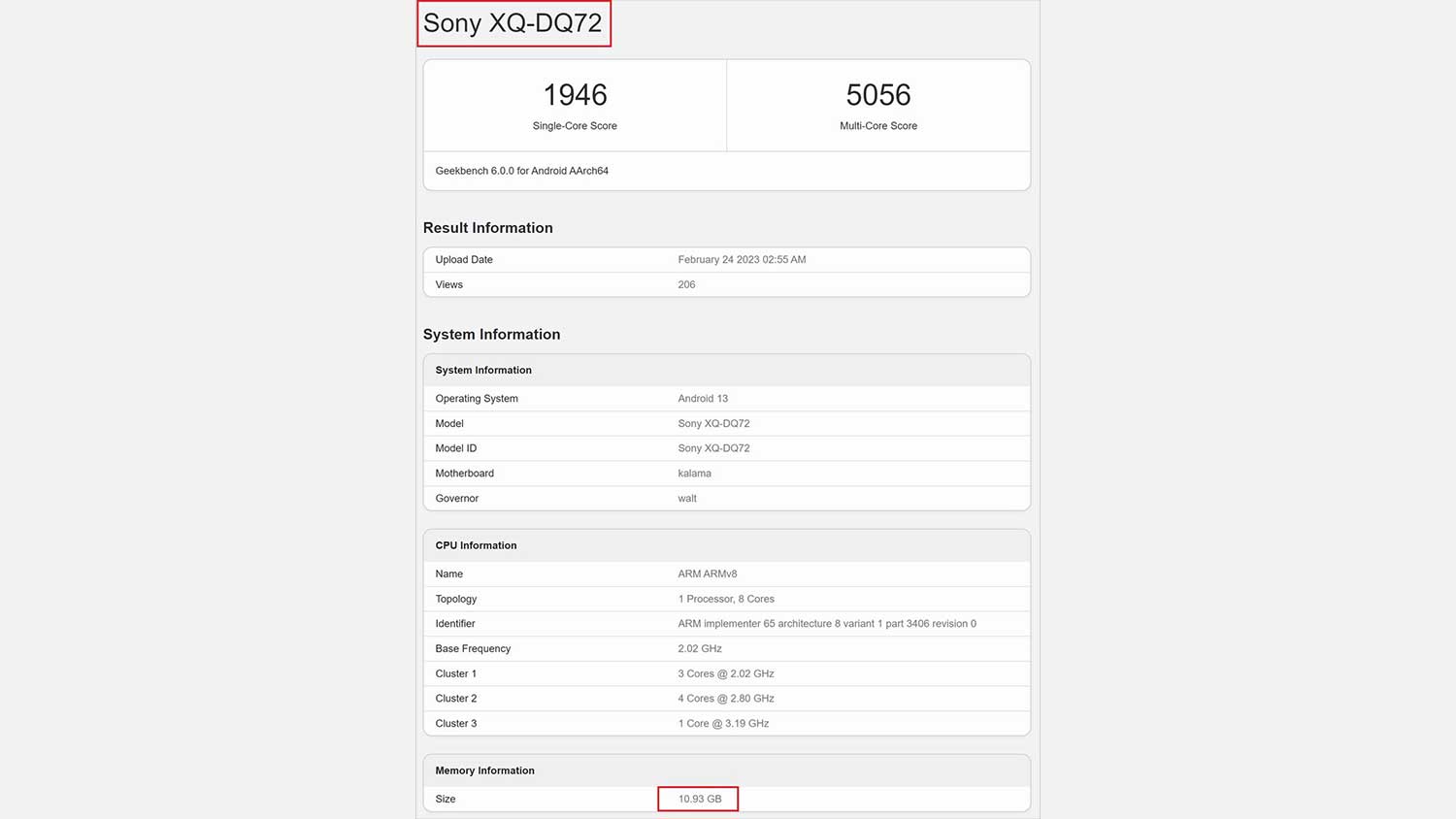 そして今回のベンチマークを確認すると「D」となっており2023年モデルかつモデル番号の規則性からもXperia 5Ⅴであると推測することができます。またベンチマークから先日の情報にあったようにRAM12GBに対応していることを確認することができます。