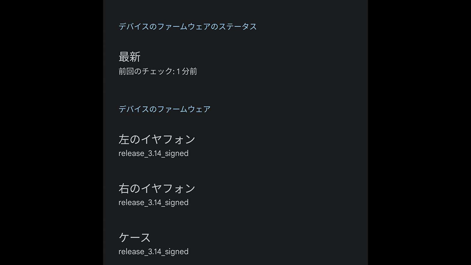 Pixel Buds Proのファームウェア情報を確認すると上記の画像からも「3.14」となっていますがこれがアップデートによって[4.30」になれば使うことができます。