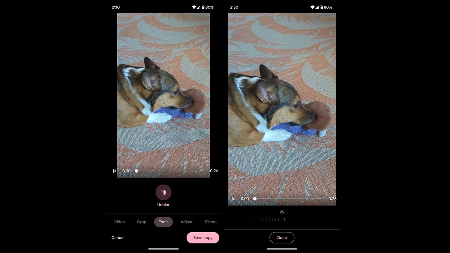 現時点でVideo UnblurをPixelシリーズに関連づけるコードはなく開発は初期段階としており上記の画像でも目立った補正がされていないことを確認することができまだまだの話です。