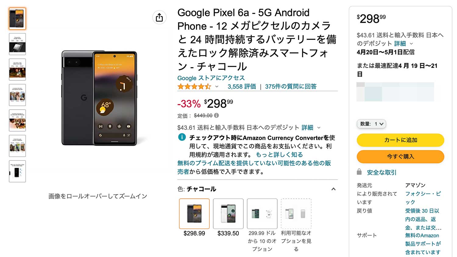 上記の画像からもカラバリ限定ですが$298で購入することが可能と33%の大幅値引きであることを確認することができます。まもなく型落ちになるとはいえ刷新された指紋認証により最適化されたGoogle Tensorの搭載とかなりコスパがいいように感じます。