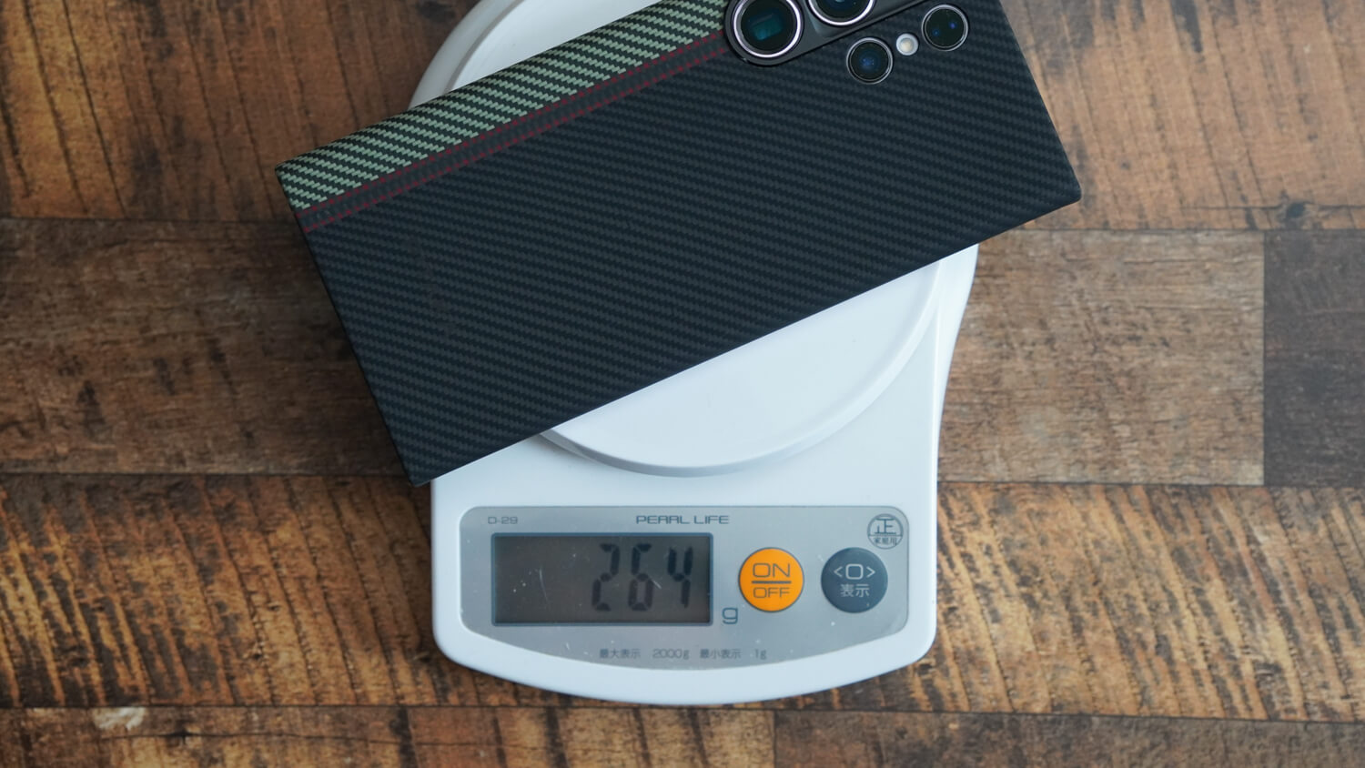 Galaxy S23 Ultraも同様にTPUフィルムがついて247gと軽い。先ほどのPITAKAと同じく質感が高いですがFROST AIRはお洒落に特化している印象を受けます。