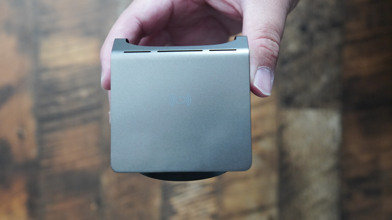 クリアデザインとなっており中央部分に充電パッドが搭載。