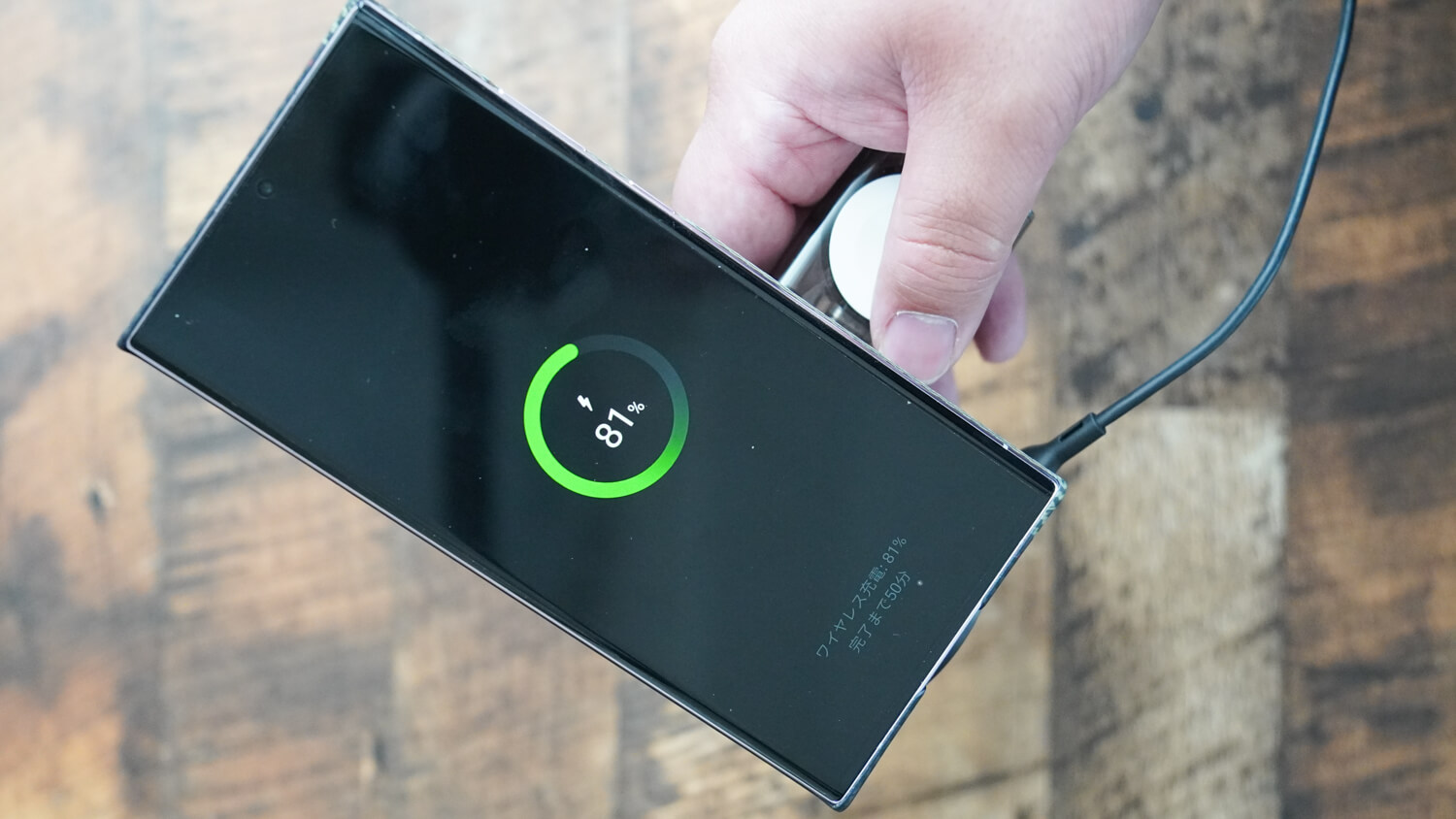 そして肝心の充電ですがMagSafeに対応したiPhoneはもちろん上記の画像はMagEZ Case 3を装着したGalaxy S23 UltraやGalaxy S23でも充電が出来ます。