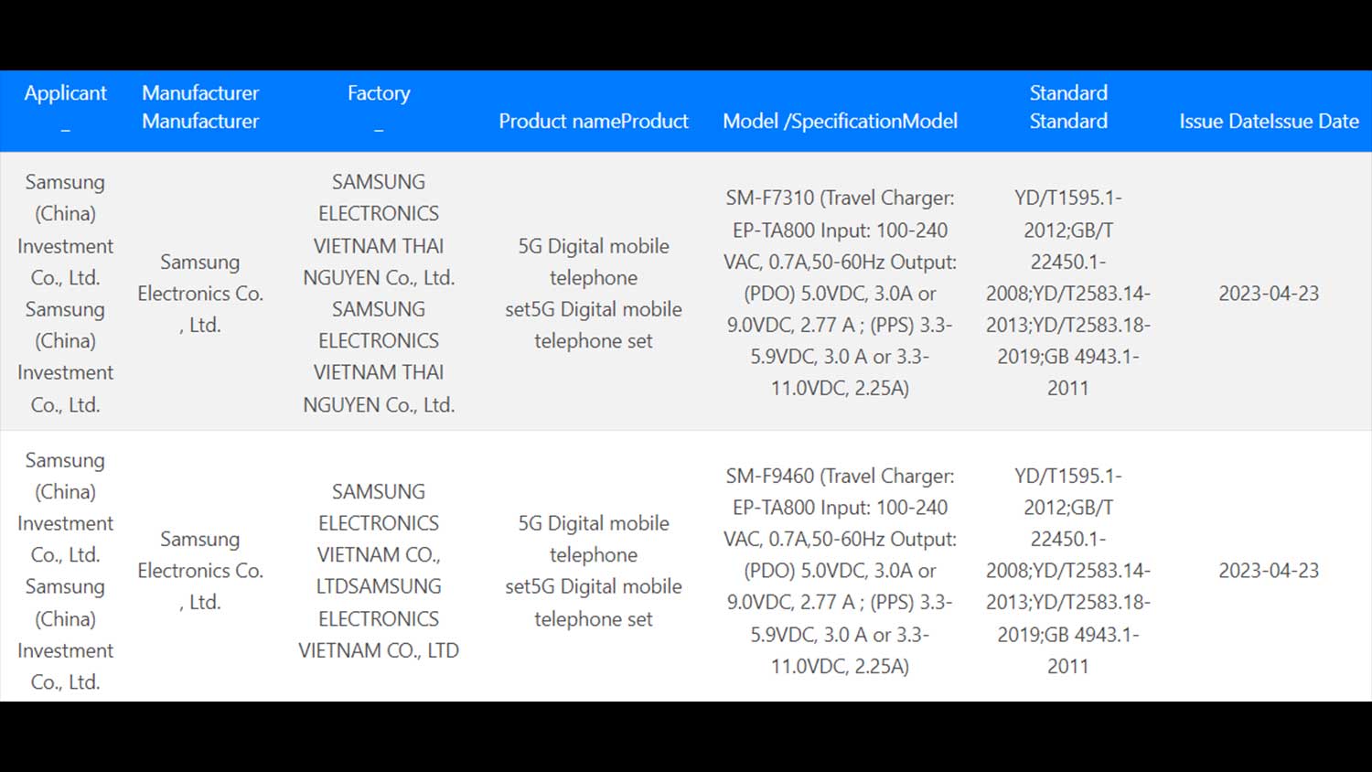 例年通りであれば8月に正式発表される可能性があるGalaxy Z Fold 5とGalaxy Z Flip 5ですが今回の情報によると3C認証からも充電速度が最大で25Wであることが判明したとしています。