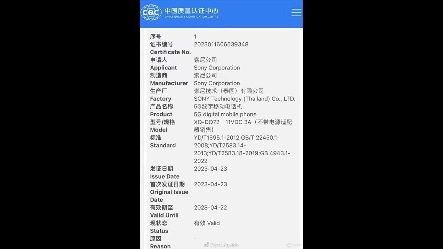 添付されている画像からもXQ-DQ72が認証を通過したことに言及しており、さらに充電速度が最大で33Wであることを確認することができます。これは先日リークした3C認証の時の情報と同じでXperia 5Ⅴではないかと予測されています。
