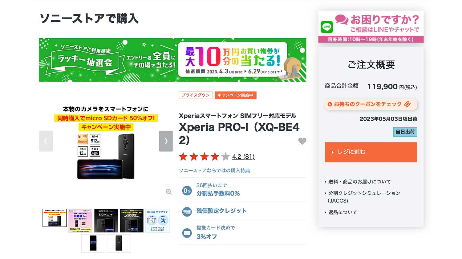 今回Sony StoreにおいてXperia PRO-Iが1万9800円と大幅値引きされ11万9900円で購入できることが判明しました。