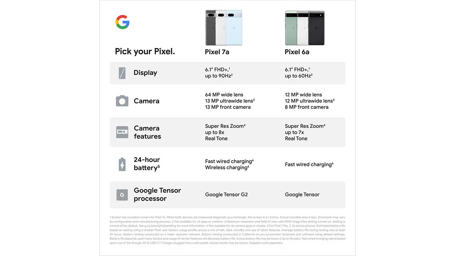 発熱がしにくく電力効率がより優れるようにチューニングしたGoogle Tensor G2を搭載していることに加えPixel 7よりディスプレイサイズが小さくバッテリー容量が大きければ最適化次第ですがPixel 7より電池持ちが優秀の可能性。