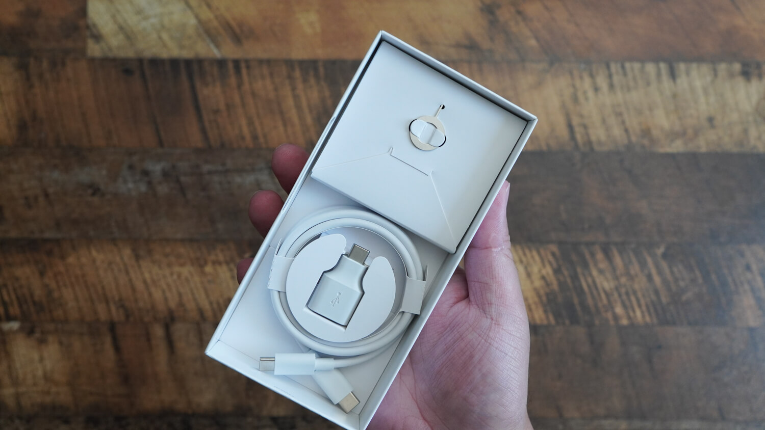 付属品を確認すると説明書/SIMピン/変換アダプター/USB-Cケーブルとお決まりのパターンです。ちなみに電源アダプターも折角なら購入を考えている人は純正の30W電源アダプターが分かりやすい。