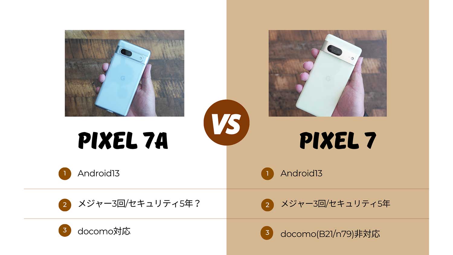 ドコモユーザーなら正直Pixel 7a一択という感じですがそれ以外のユーザーであればどちらかセールなどで安くなっている方を買えばいいのではないかなと思います。