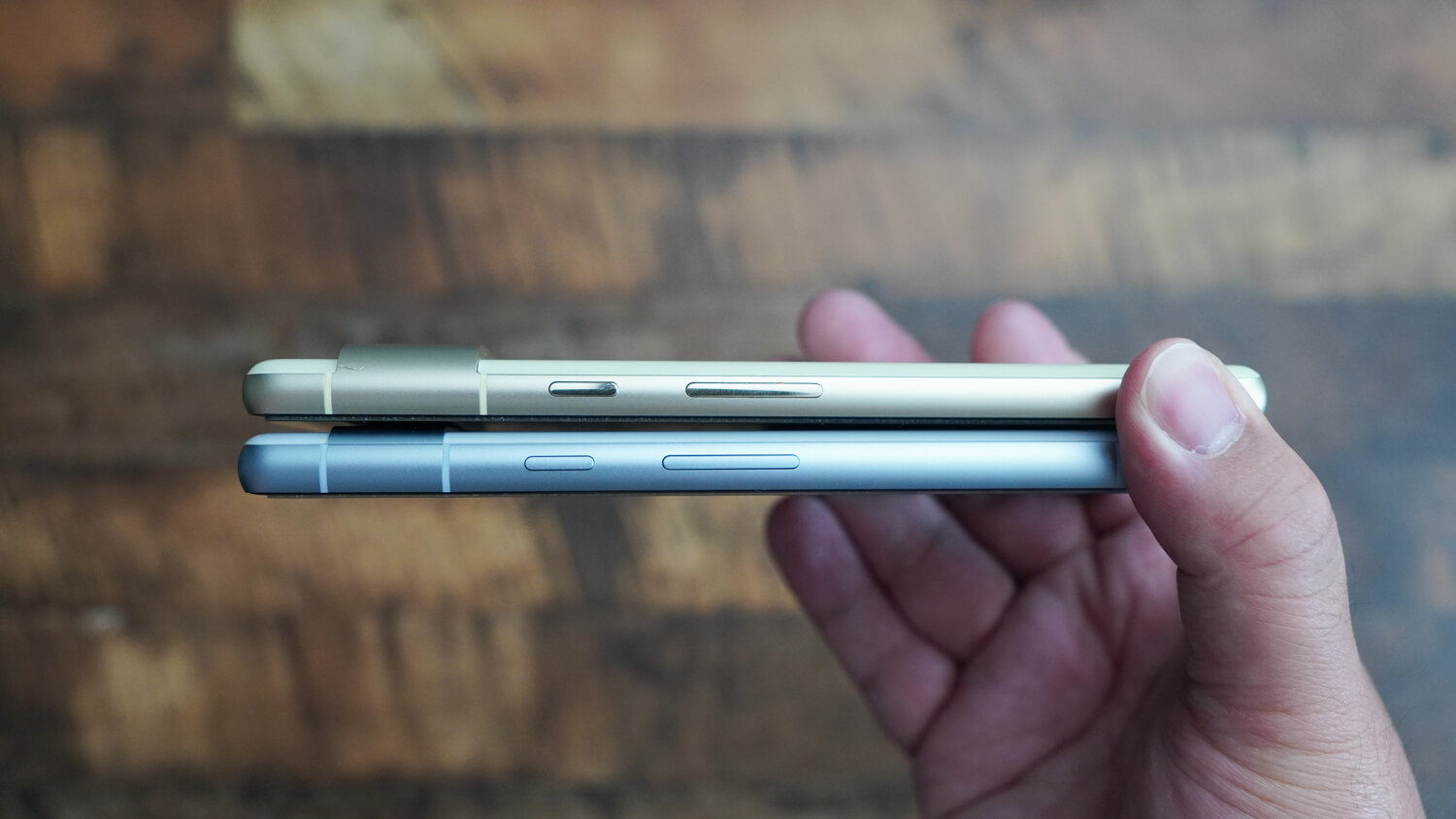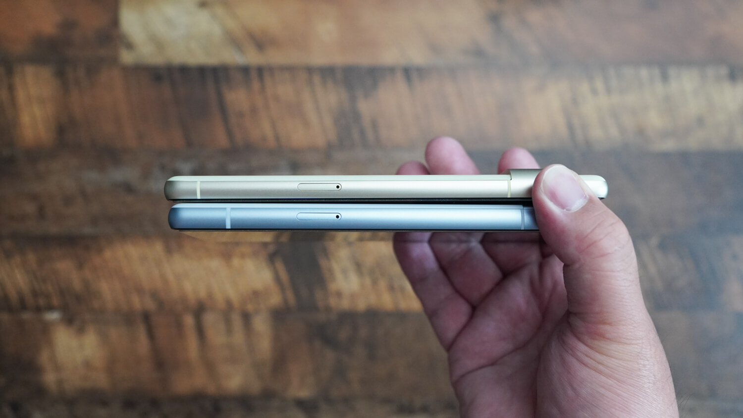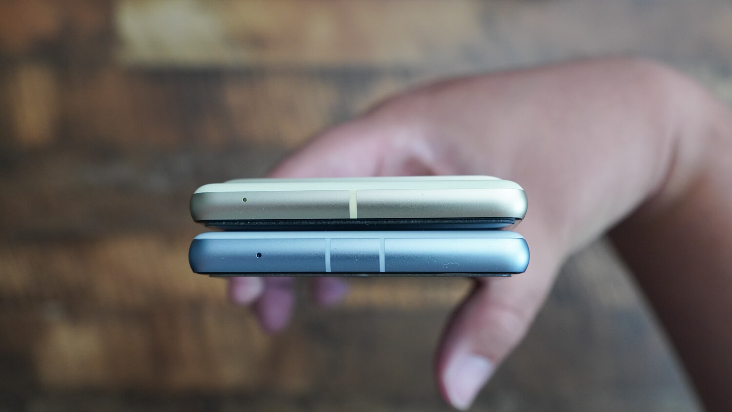 右側面には音量ボタンと電源ボタンと物理ボタンの搭載位置なども差がなくサイドフレーム自体もアルミかつマット仕上げと共通。