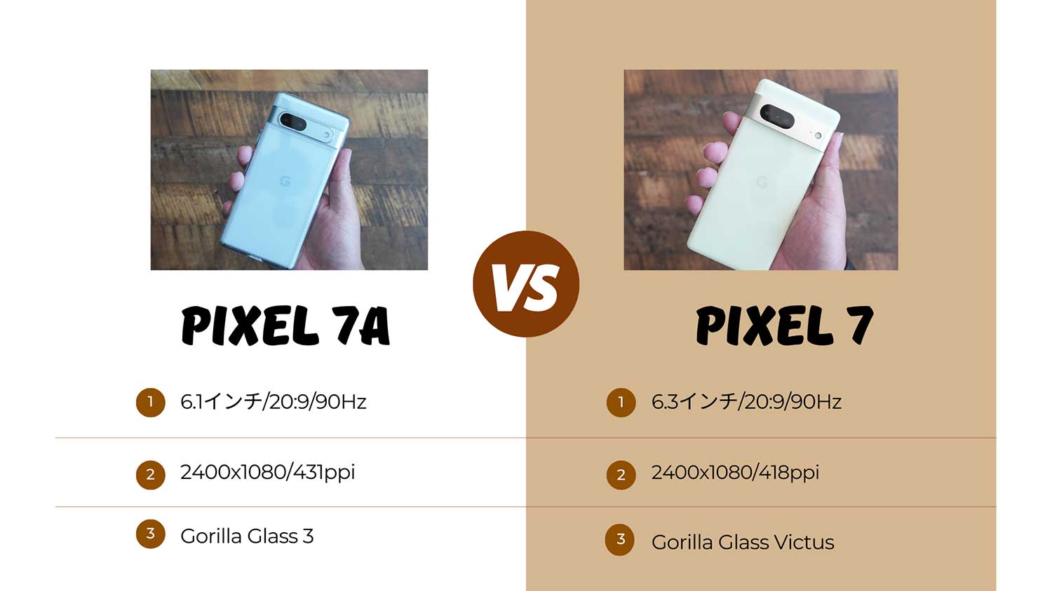 Pixel 7の方がGorilla Glass Victusなので特に擦り傷などの耐久性は優れますが雑に扱うのは個人的には怖くてできない。ただそれ以上にPixel 7aはもっと怖くてできない。
