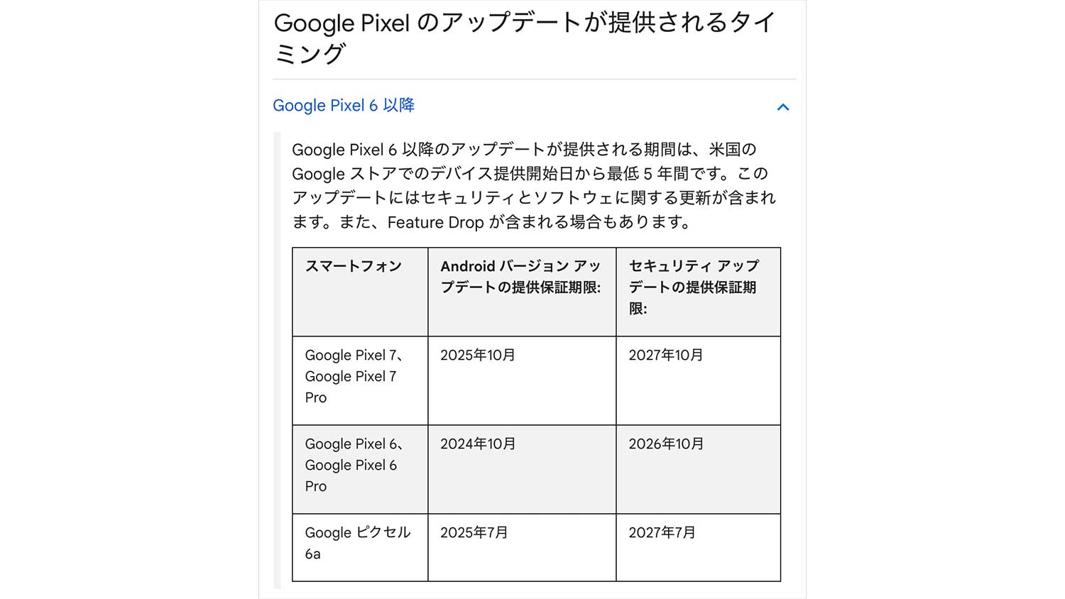 そのためメジャーアップデートは同じくAndroid16で終了する可能性がありますが現時点でGoogleの公式ホームページにおいてサポート期間が更新されていないため何ともです。