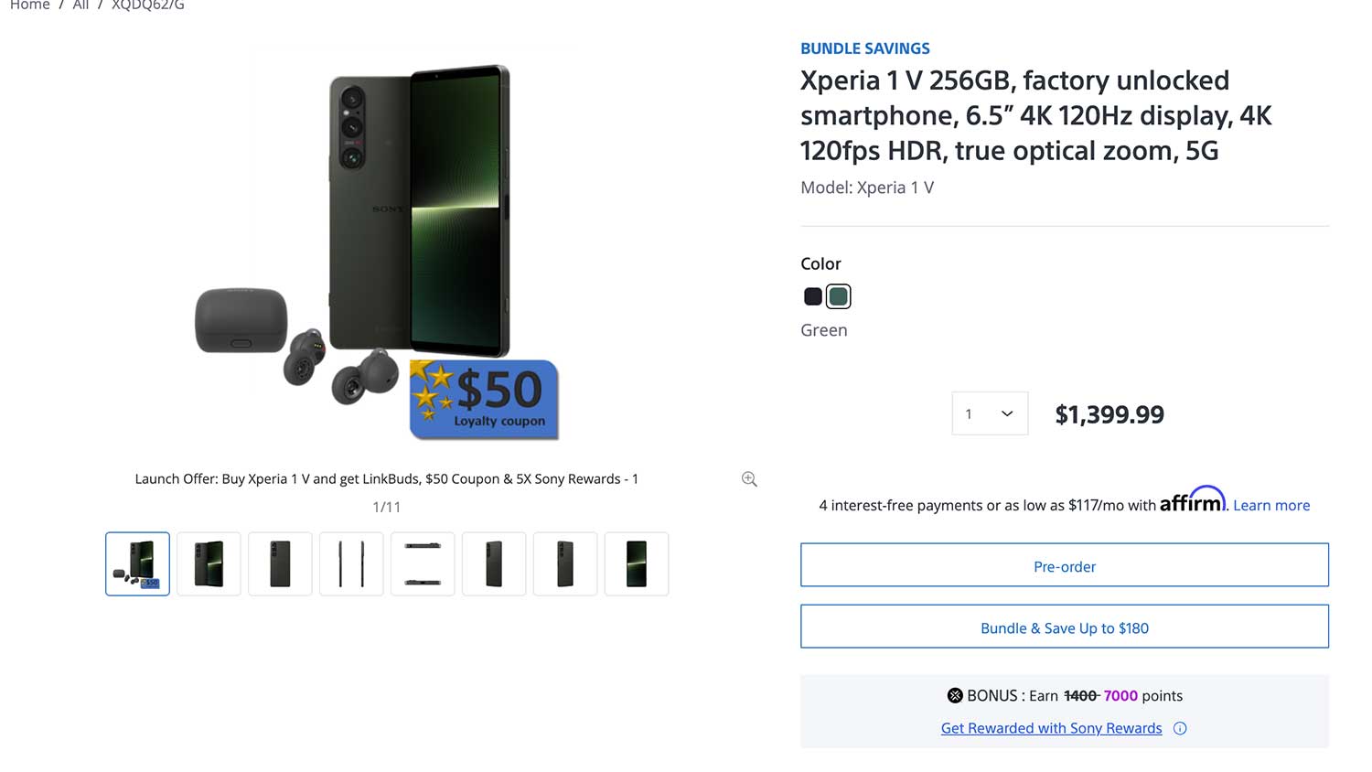 今回Sony USAにおいてXperia 1Ⅴの予約が開始していることが判明しました。気になったのは価格で定価が$1399に変更されていることでXperia 1Ⅳ対比で$200に値下げになっていること。
