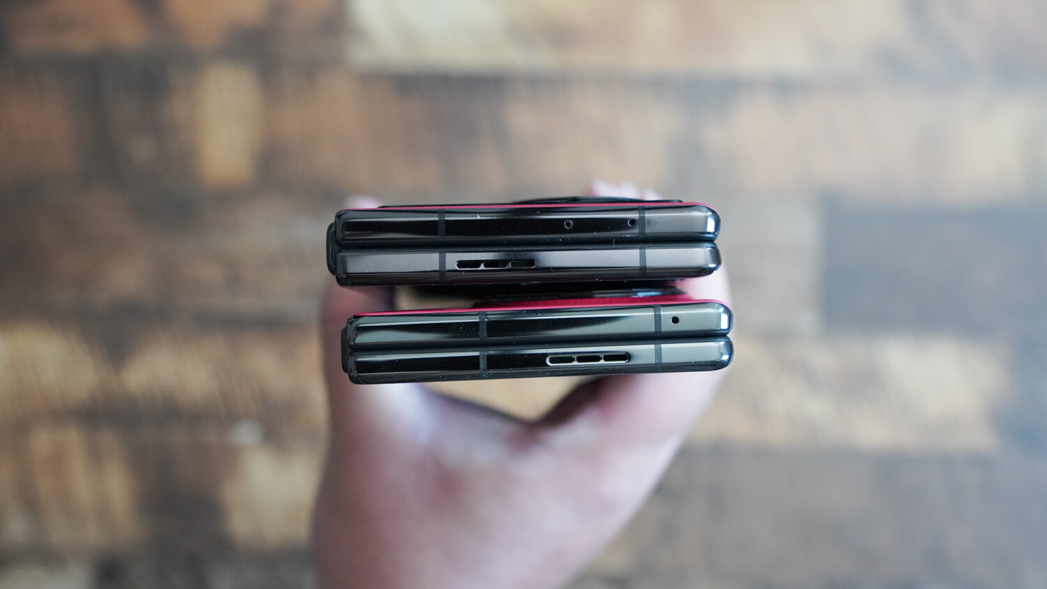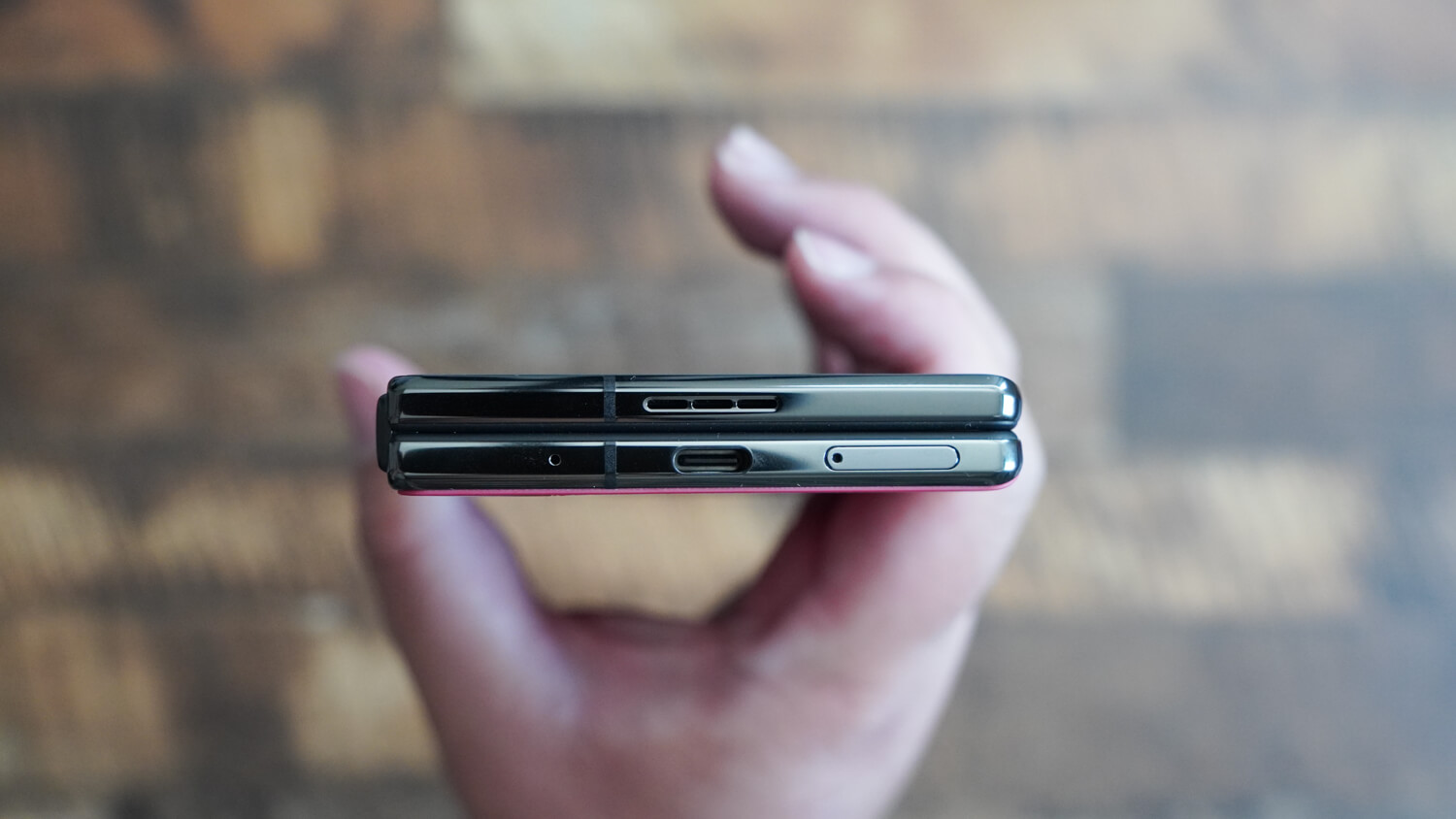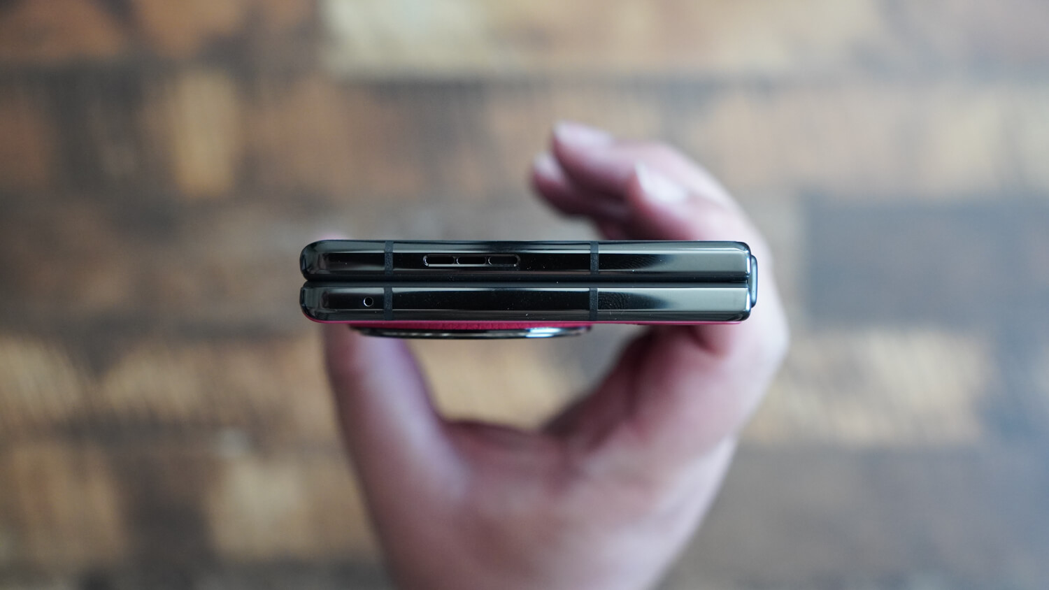 本体上部を確認するとvivo X Fold 2はスピーカーグリルとセンサーが一つ削除されています。