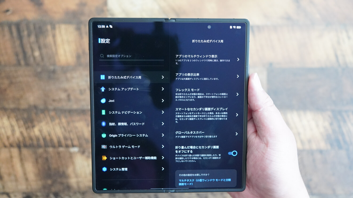 ただvivo X Fold 2はヒンジが軽くて開閉はしやすいですが90度を超えると厳しい。