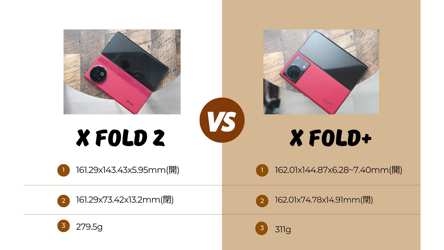 バックパネルを確認する地味に変更されておりvivo X Fold+では背面がレザーの質感で統一。一方でvivo X Fold 2はヒンジに近い部分が縦にガラスと質感が変更されています。