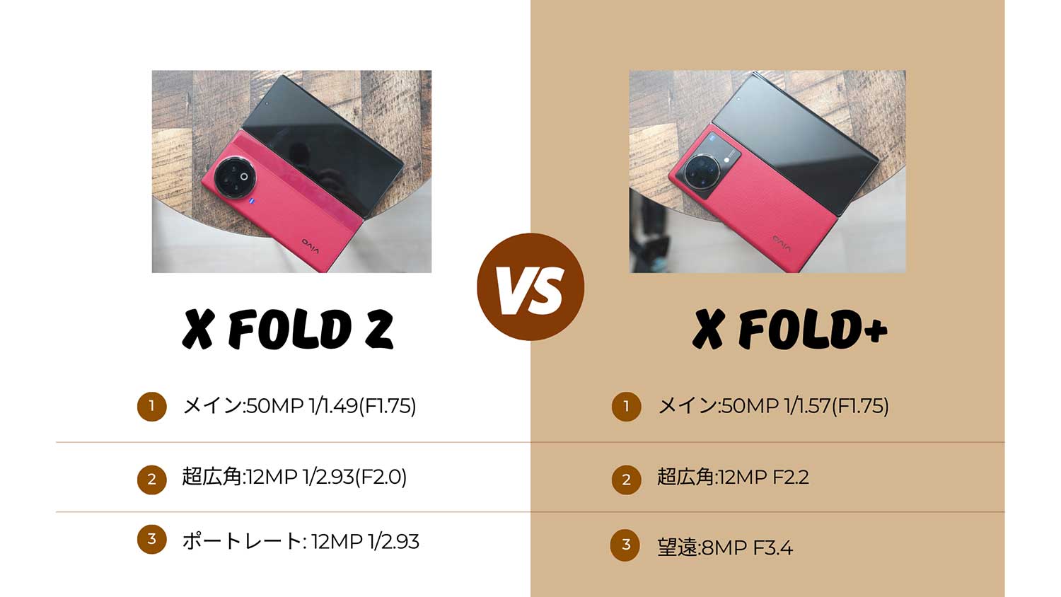 台座部分はなくなったとはいえカメラ部分自体はvivo X Fold+対比で大型化しています。ただ面白いと思うのは搭載しているセンサーの数は一つ減っていることです。