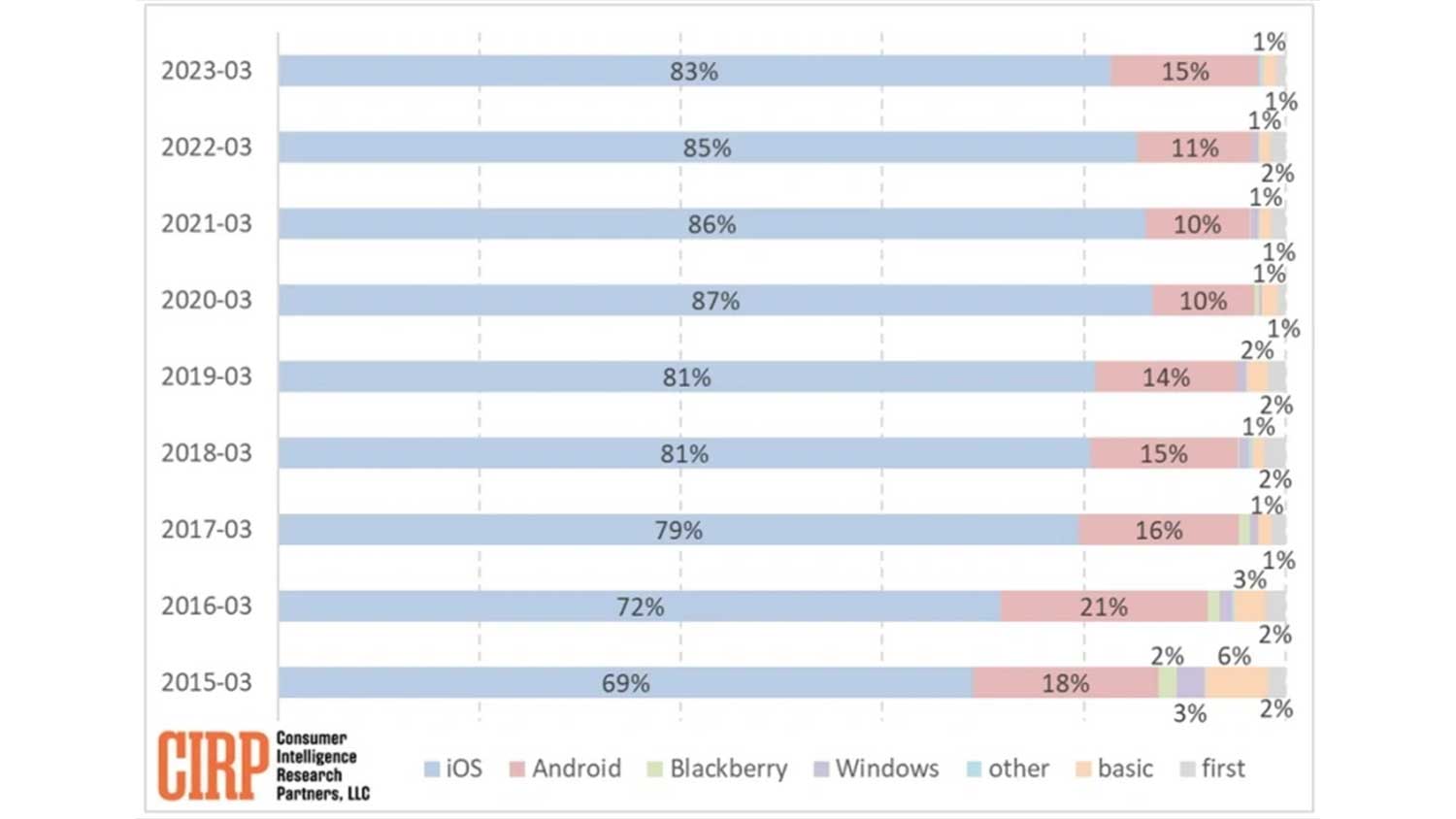 ちなみに今回の調査結果によると今年の3月までの調査においてiPhoneを購入したユーザーの15%が買い換える前はAndroidを所持していたことが判明。ここ数年は10%前後で推移していた感じですが直近においてはiPhoneへ乗り換えているユーザーが急増している感じに。