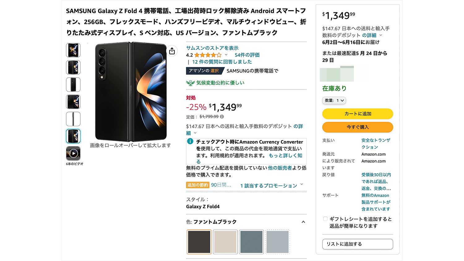 今回の情報によると米AmazonがGalaxy Z Fold 4を大幅値引きで販売していることが判明したとしています。Samsungオンラインショップなどでも割と高頻度で割引されている印象ですが今回の米Amazonがいつもと異なるのは条件がないこと。