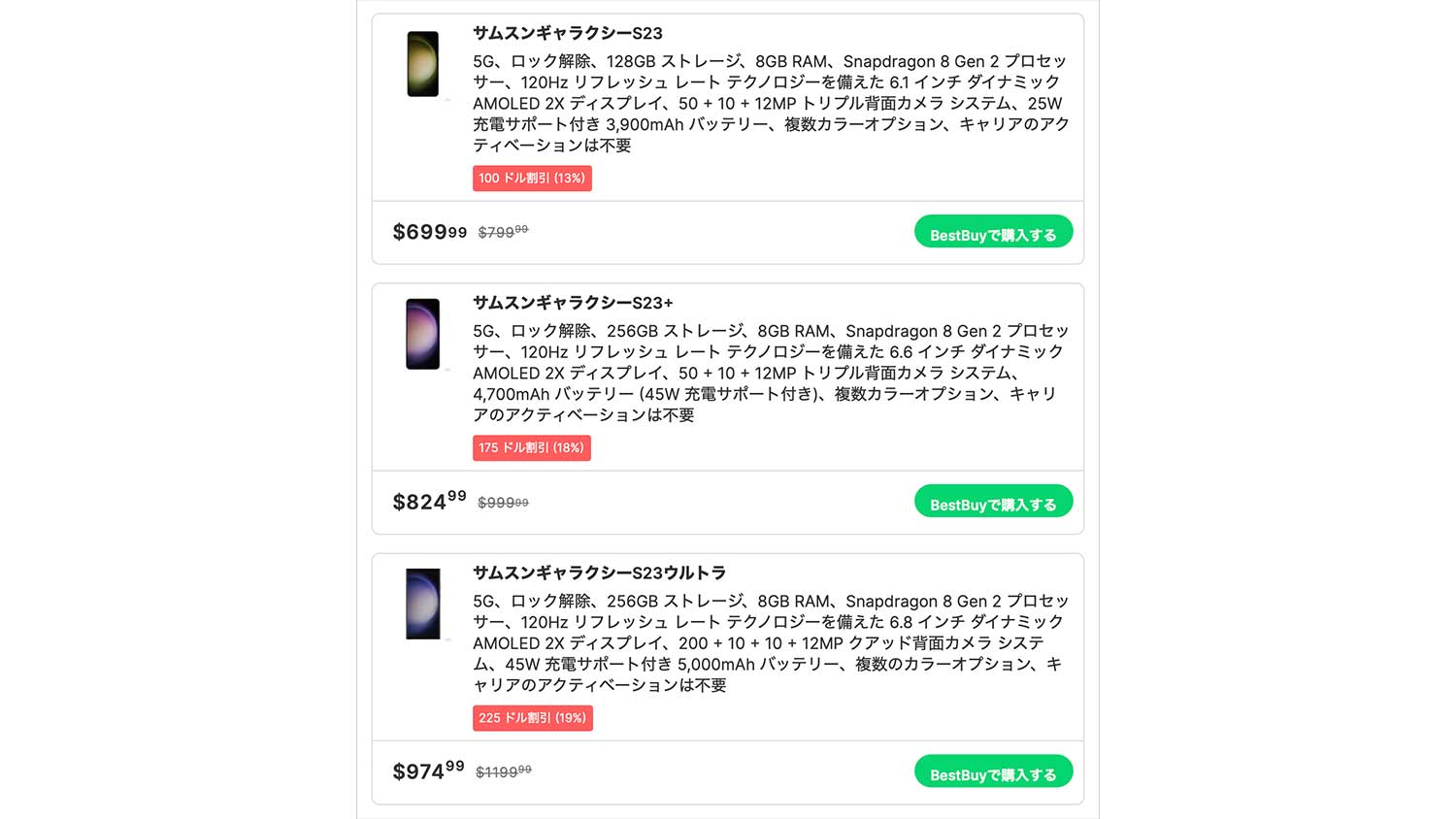 詳細は「Galaxy S23が意外過ぎた。2023年第1四半期買って良かった機種BEST3」をご参照下さい。さて今回Phone Arenaによると米Best BuyにおいてGalaxy S23シリーズが過去最高の割引で販売されていると報告しているのでまとめたいと思います。