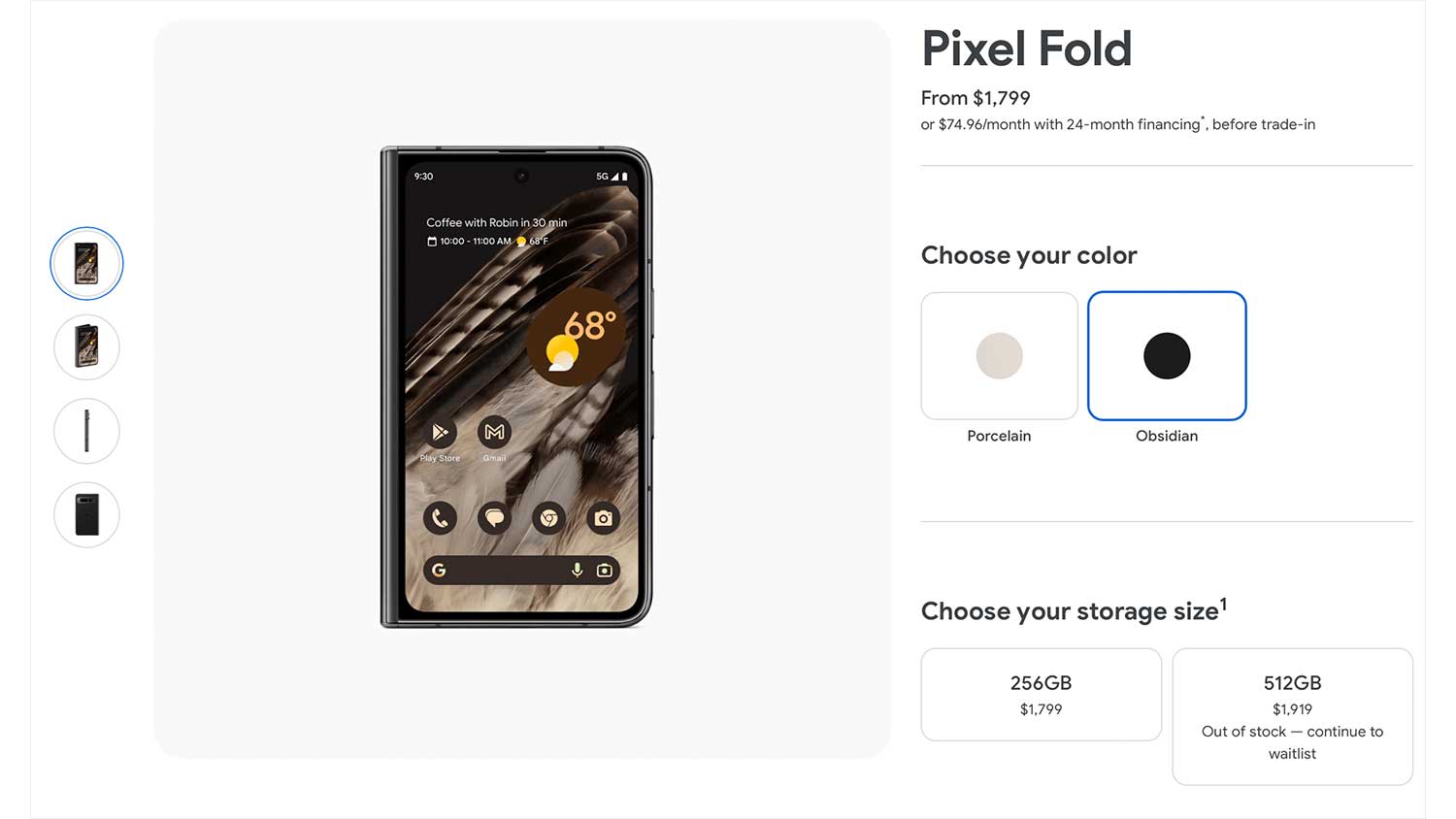 国内では6月20日より予約開始予定となっているGoogle Pixel Foldですが米Google Storeにおいてはすでに予約開始。そして今回の情報によると早くも一部モデルの初期在庫が完売していることが判明したとしています。