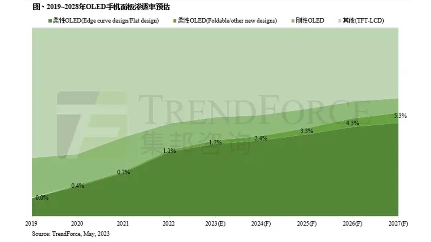 TREND FORCEによると2023年においてスマートフォンの出荷台数は12億台未満になると予測しており、市場が飽和に近づていることからも今後は折畳式機種が成長の主役になる可能性があるとしています。