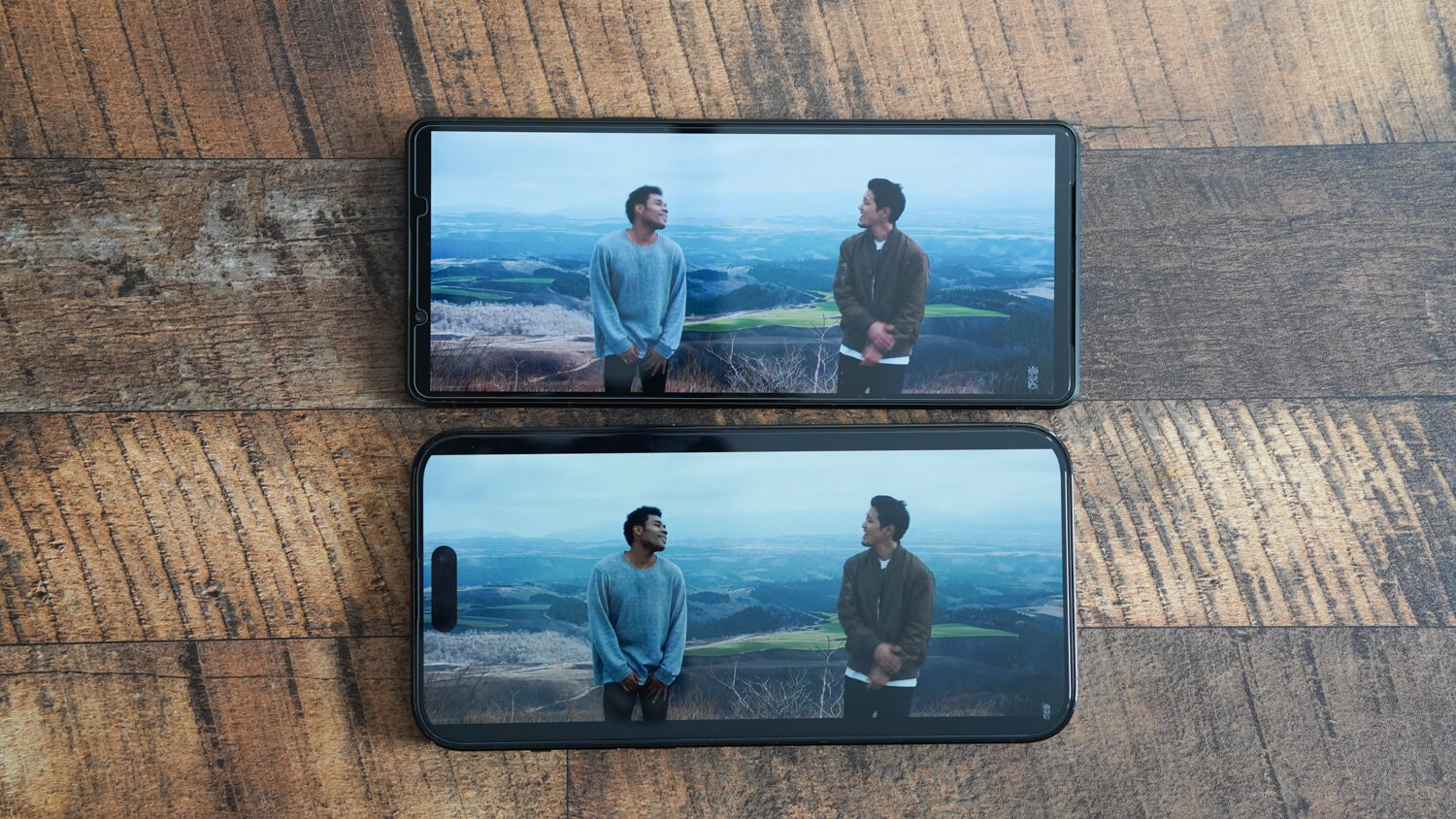 Xperia 1Ⅴの方がより黒がはっきり表現されるため映像が美しく感じることが多いですがスマホとしてみた場合iPhone 14 Pro Maxの方が明るくて見やすいように感じます。