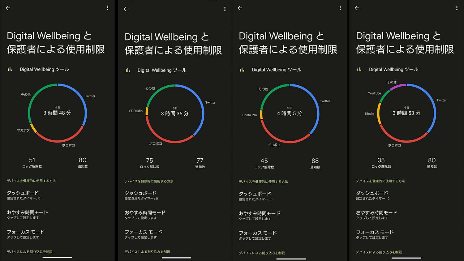 YouTubeやtwitterではそこまで一気に減る印象はなくやはりゲームをちょっとでもすると一気に減る感じ。そのためゲームをやる人とやらない人で電池持ちに対する印象が大きく異なると思います。