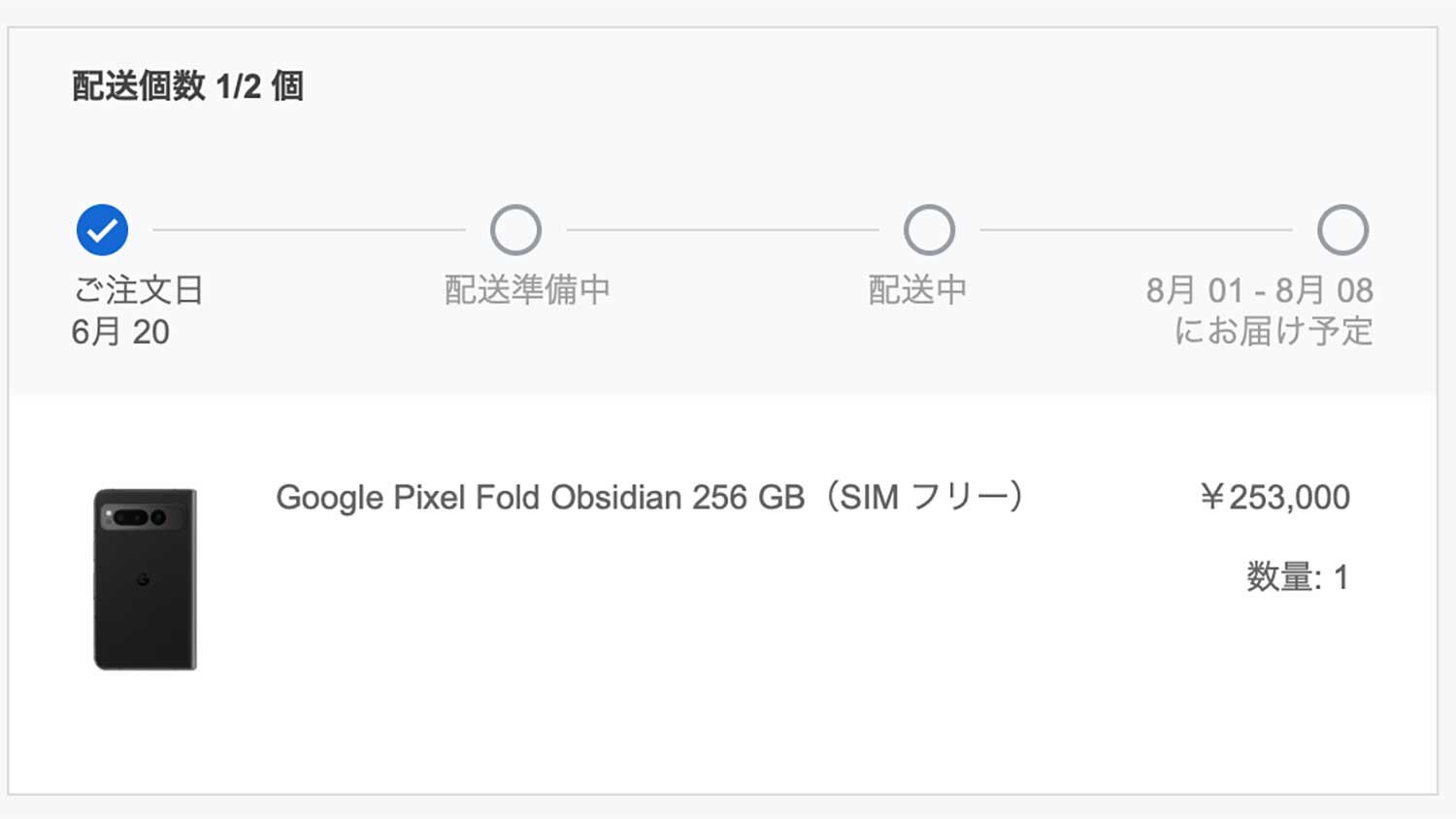 一方で発売日に関してSoftBank版のみ7月31日としていることからおそらくこの日が国内における一律の発売日の可能性がありますがGoogle Storeの購入履歴を見ると8月1日以降の配送予定となっており7月下旬に届くのか今からちょっと不安です。