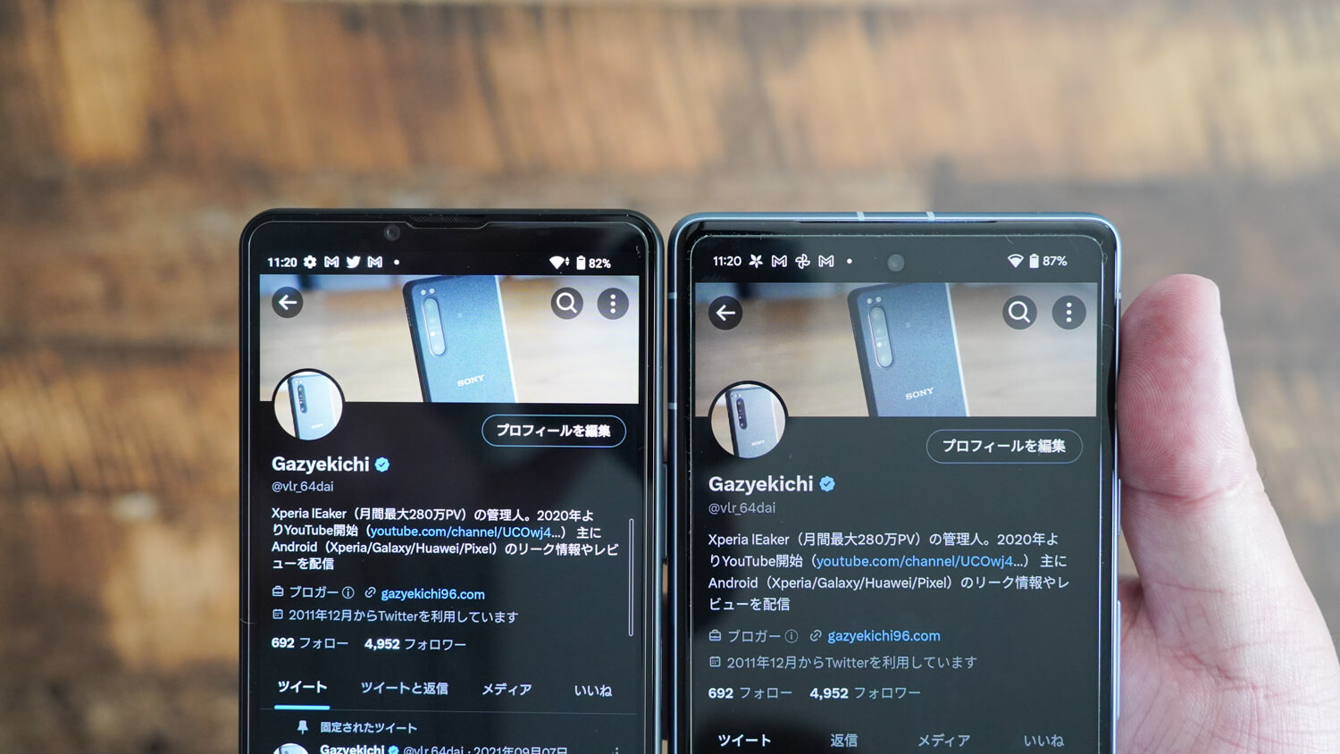 次にディスプレイですが同じディスプレイサイズとはいえアスペクト比が異なるため見やすさが違う。Xperia 10Ⅴの方が一度に表示できる情報量が多いですがその分コンテンツが小さく表示されます。