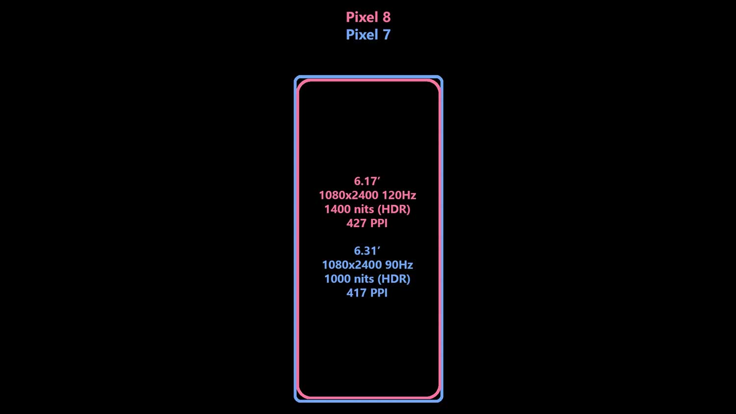 先日にはPixel 8シリーズのカメラセンサーの詳細をリークした海外サイトがGoogleの内部情報からとして今回はディスプレイスペックについてリークしておりまずPixel 8から確認するとディスプレイサイズは現行モデルから小型化しており6.17インチであることに言及。