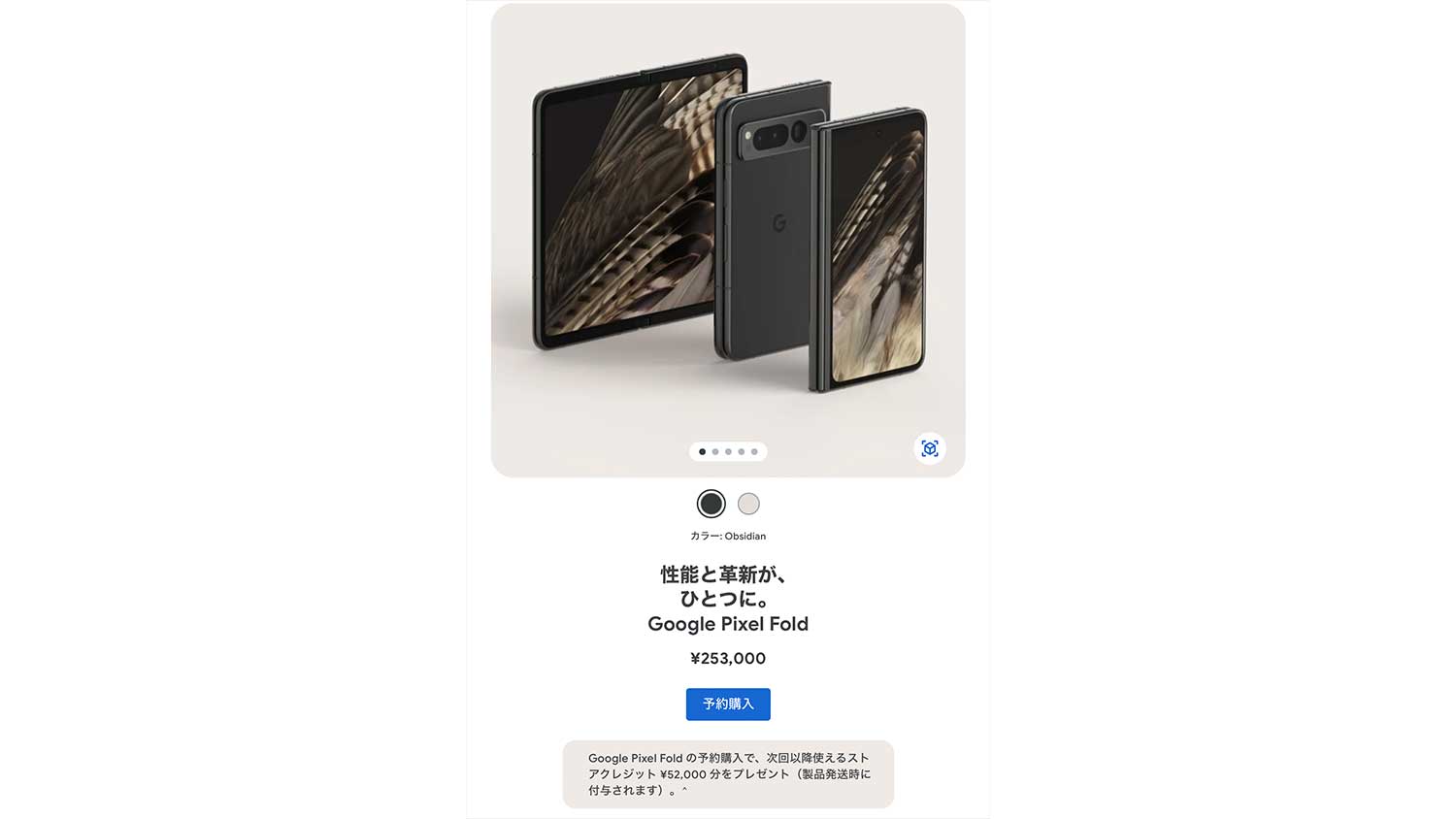例えばPixel Foldで見るとGoogle Storeで7月16日までに予約/購入すると製品発送時に5万2000円分のストアクレジットが貰えるので実質20万1000円で購入可能になります。