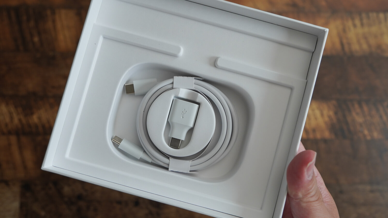 付属品を確認するとお馴染みですがUSB-CケーブルにSIMピンに変換アダプター。