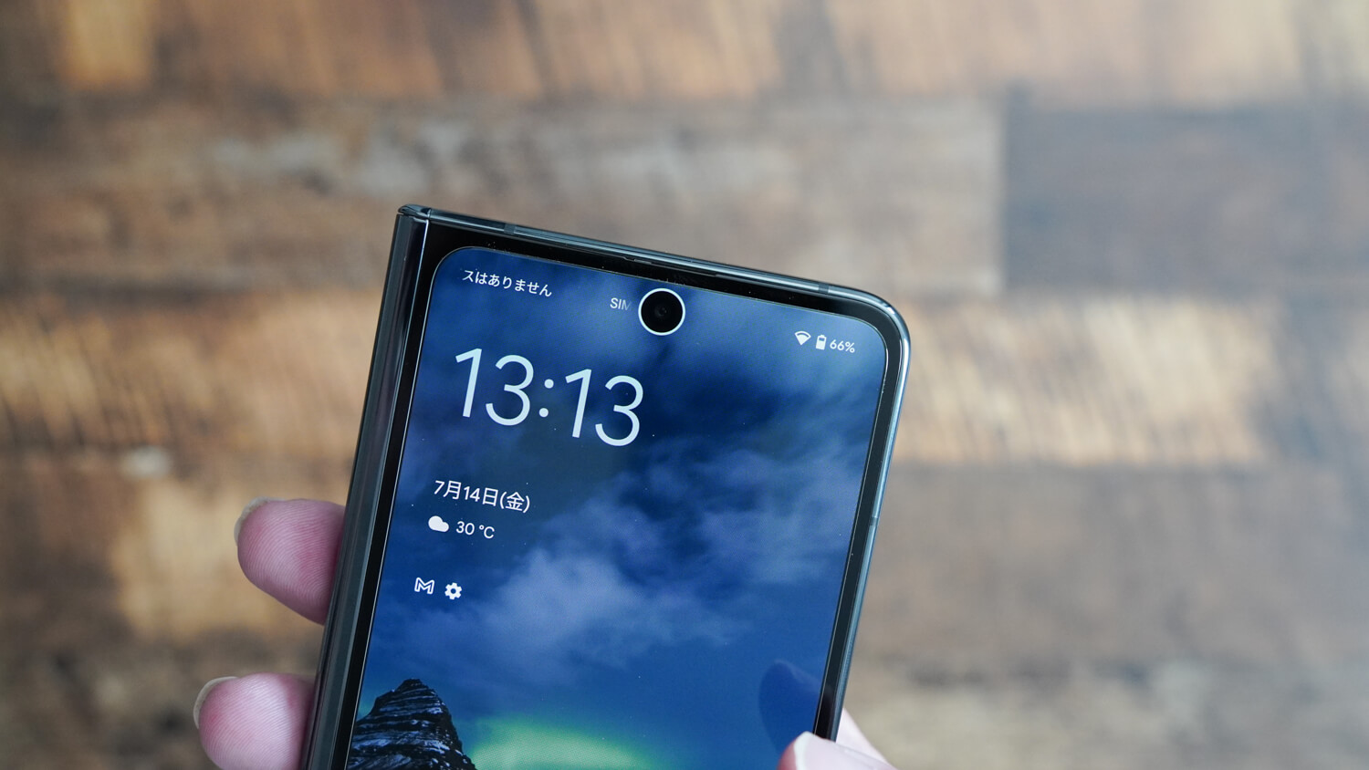 なのでGalaxy Z Fold 4のようにUnder Display Cameraもなくすっきり見えます。実際に使っていてベゼル部分は個人的には気にならない感じで通常のスマホであってもパンチホールやEdgeディスプレイが気にならないと同じ感じだと思います。