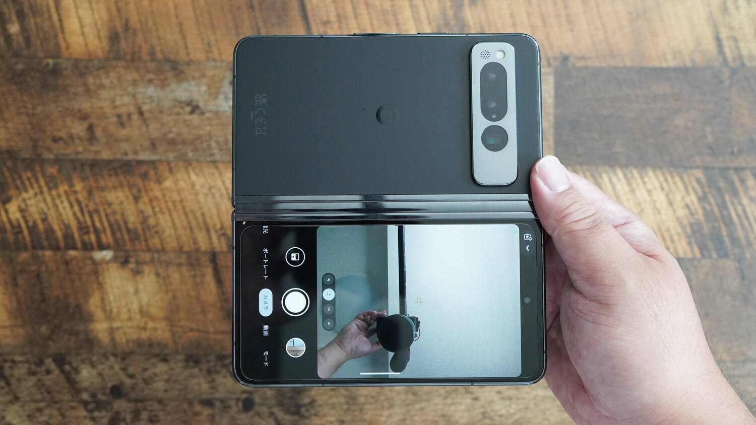 ちなみに折畳式機種らしい使い方としてはリアカメラを使ったファインダーモードでセルフィーをリアカメラで気軽に撮れるのは魅力だと思います。なのでインカメラの性能に制限されることもなく画角なども変更して臨機応変に撮影可能。