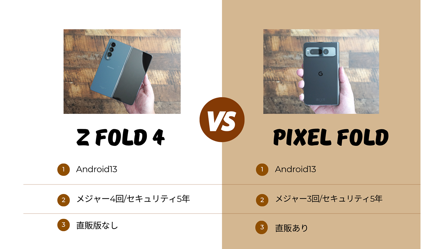 そして基礎スペックを確認していくとアップデート期間はGalaxy Z Fold 4の方が長いですが発売時期の違いからもメジャーアップデーとは同じでセキュリティはPixel Foldの方が長いです。