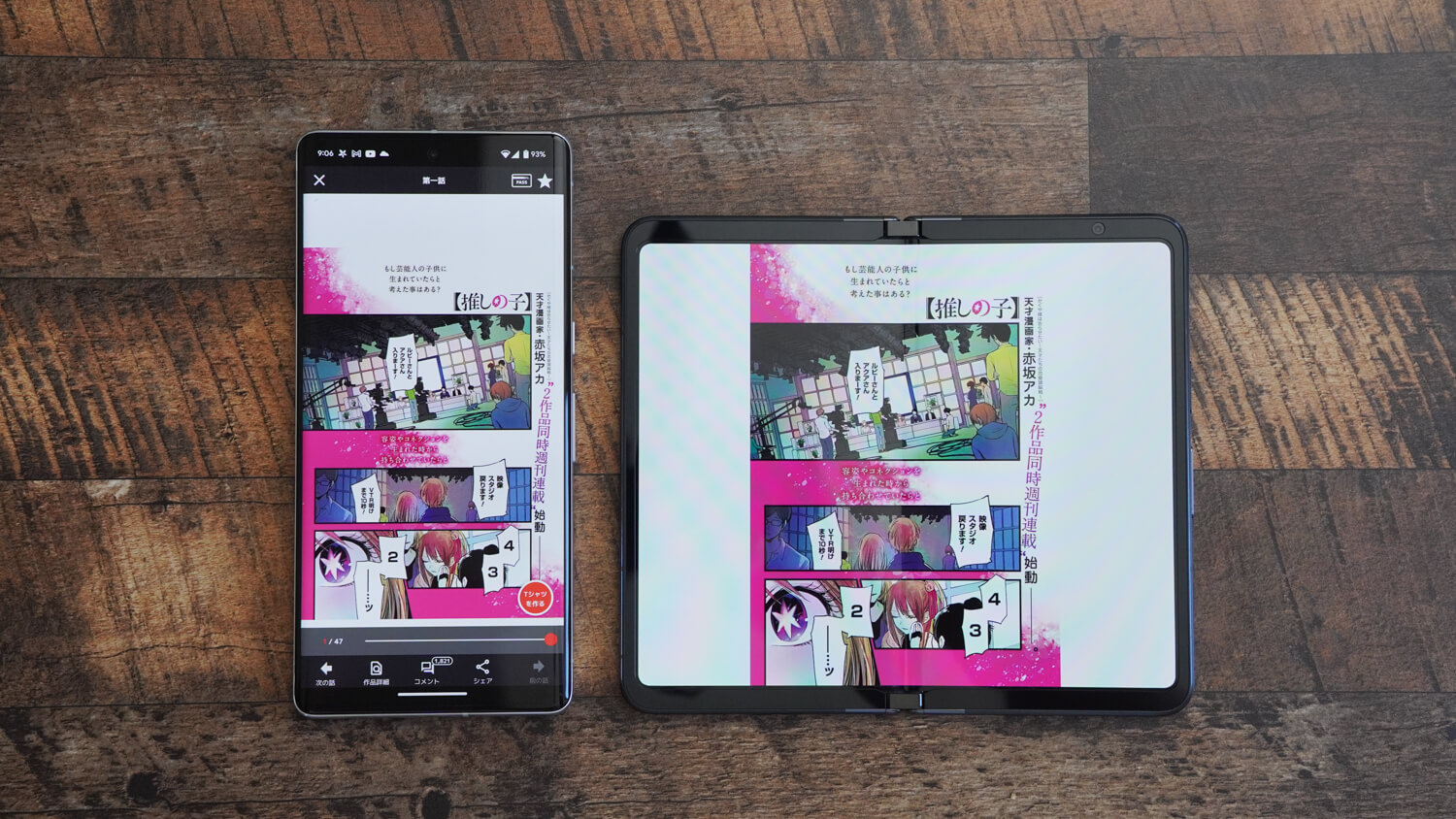 一方で1ページしかない場合はPixel Foldの方がやはり大きく表示されるという感じ。