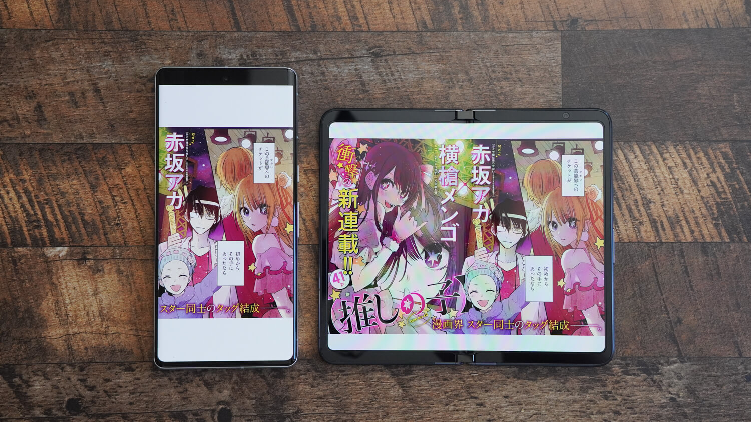 とはいえ世の中の多くのコンテンツは16:9であることが多いのでPixel Foldの方が大きい。