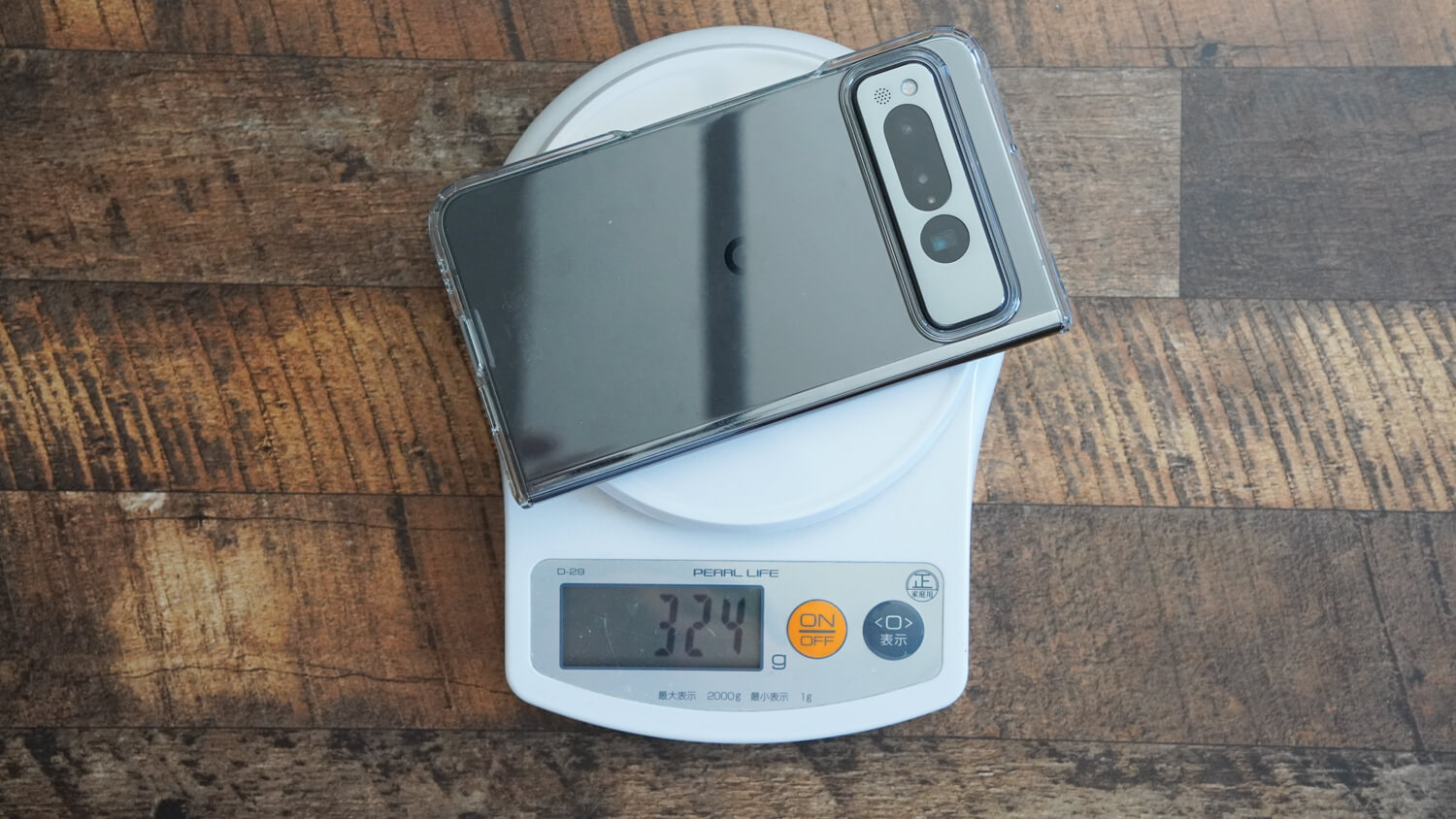 もちろん使用するアクセサリーにもよりますがPixel 7 Proでも専用フィルムにケースをつければなんだかんだ250g前後になります。ゴツメのケースをつければ270gオーバーになることもありますがそれでもPixel Foldは超えない。