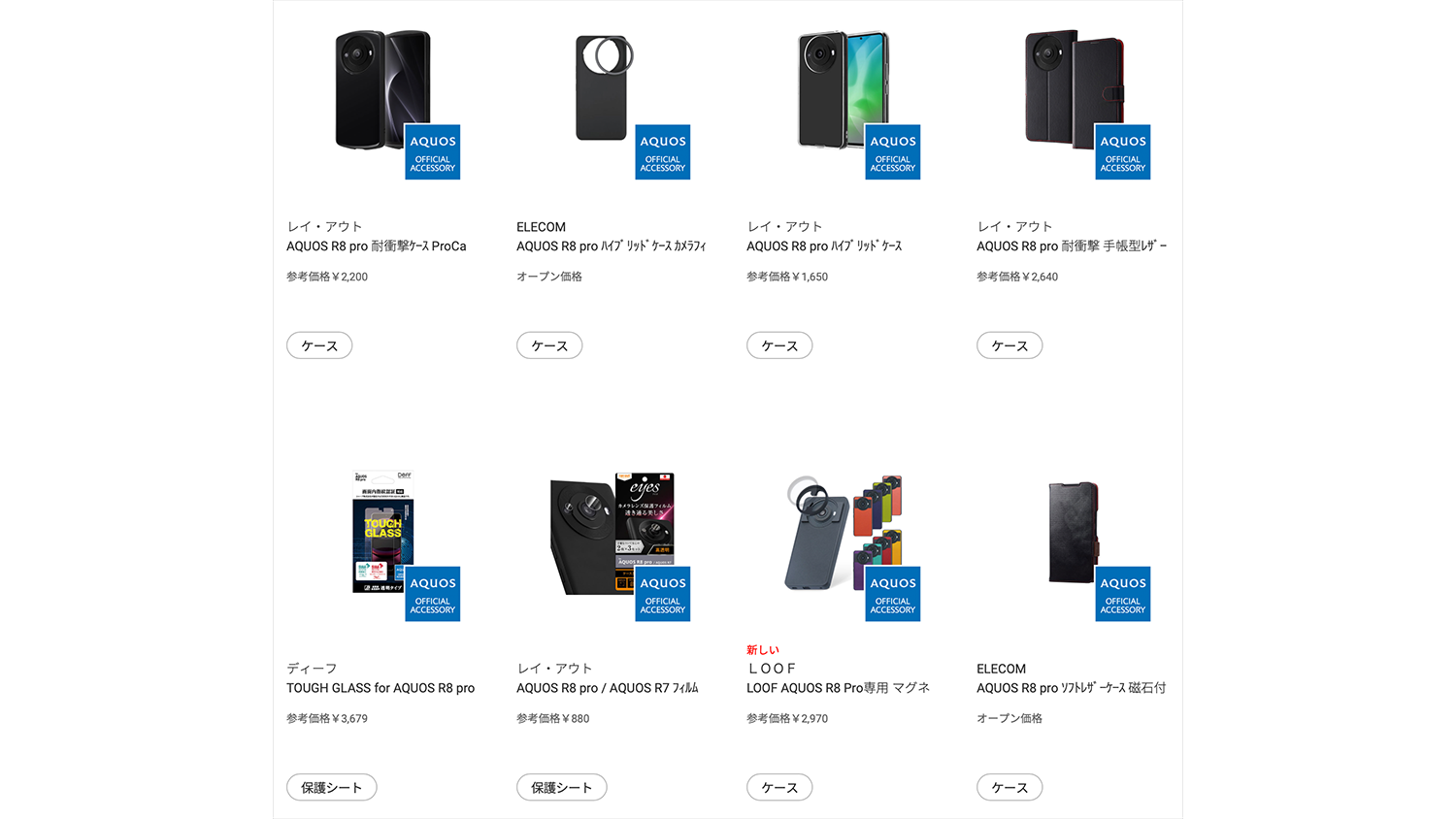 一応公式ホームページを確認するとサードパーティ製ですがSHARP認定のアクセサリーがラインナップされておりピンと来ない人はこの中から欲しいものを選んだ方がわかりやすいかも。