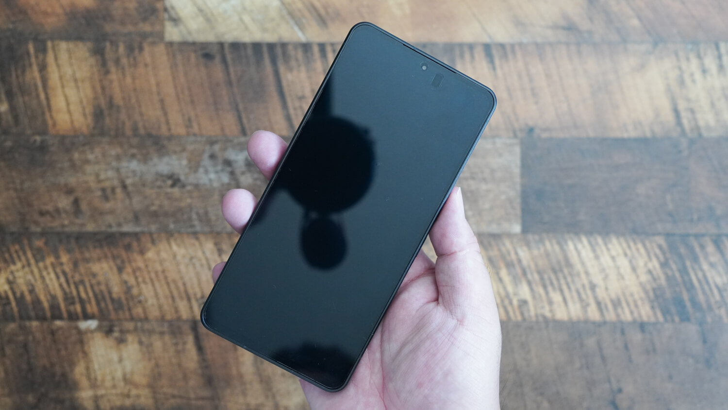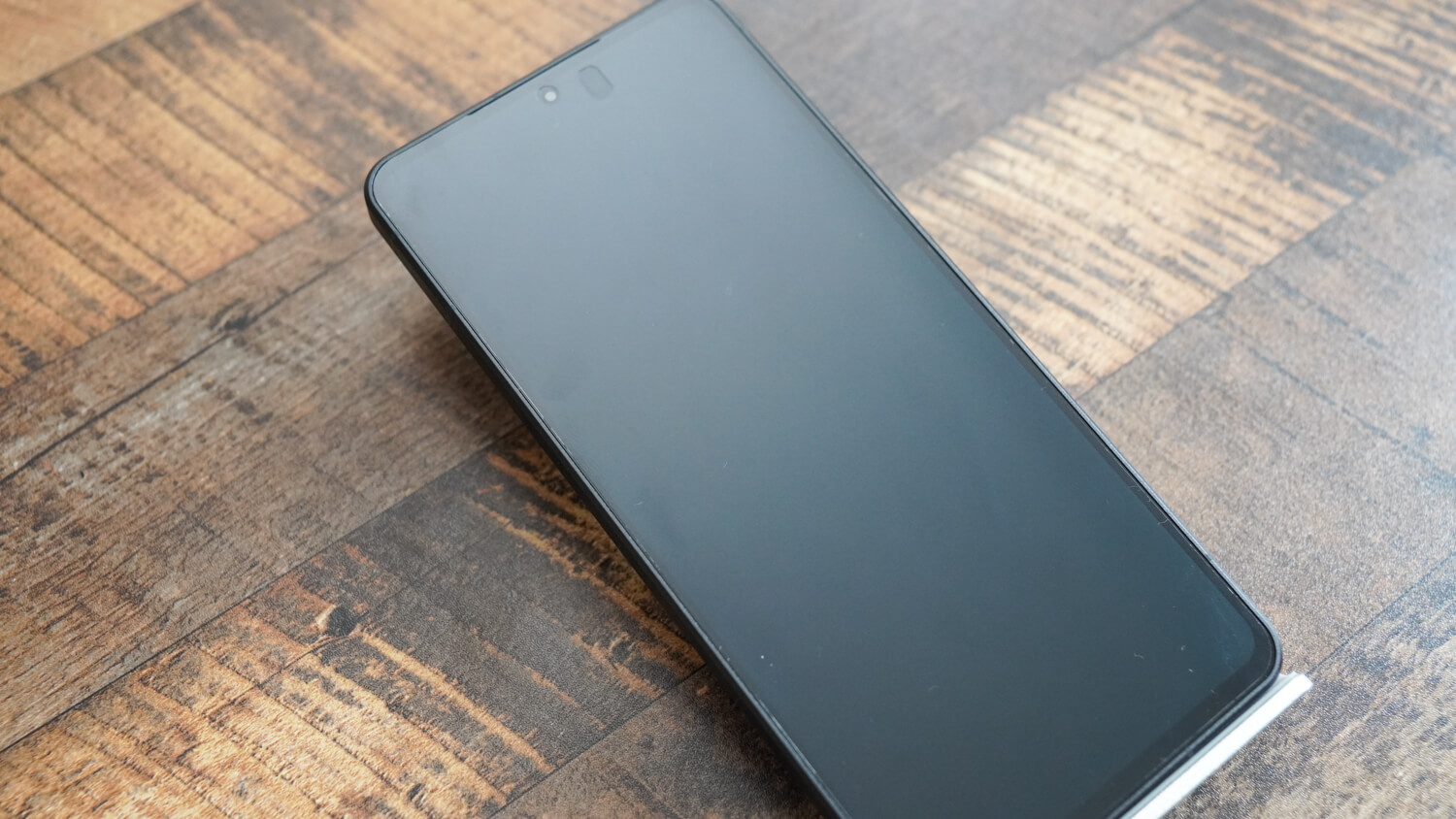 フロント部分を確認するとパンチホールデザインの採用で上下ベゼルの太さは不均等です。何より個人的には前モデルと同様にフラットディスプレイを継承してくれたのは嬉しいところ。
