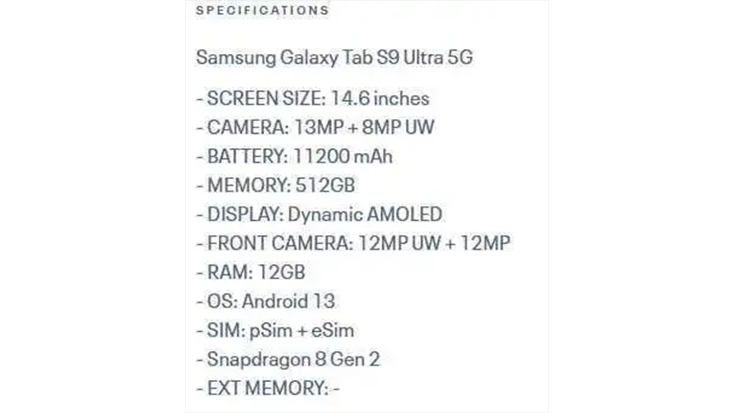 今回同氏がTwitterにGalaxy Tab S9 Ultraの一部スペックとプレス画像をtweetしていることが判明。ただ残念なことに著作権の問題から削除されておりTwitter上では現在確認することができません。