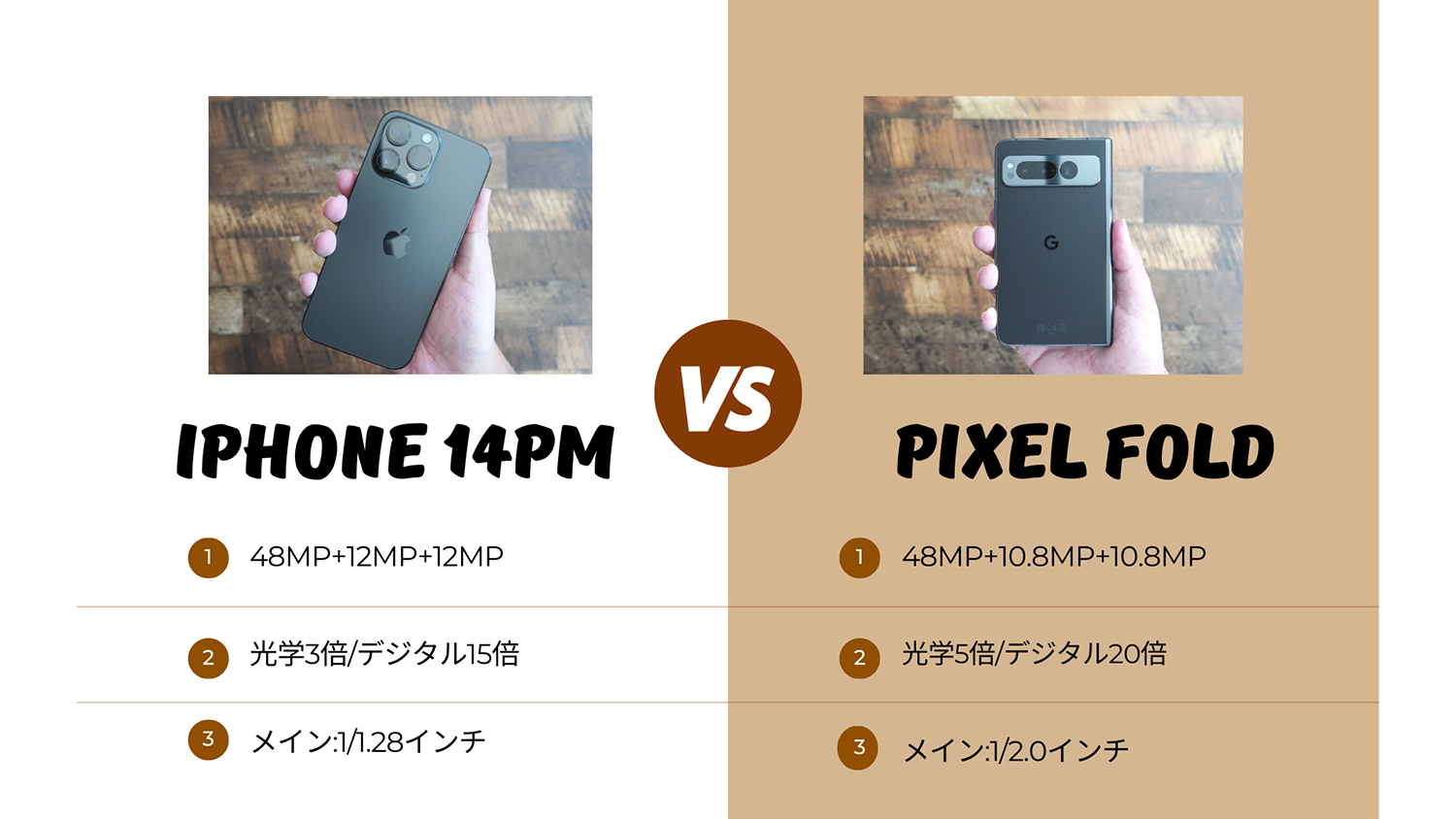 今回の画像はPixel FoldにiPhone 14 Pro Maxの順番で撮影しているので予めご了承下さい。