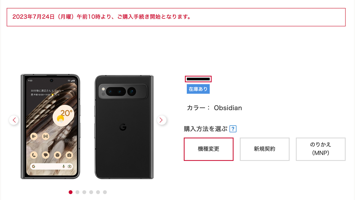 7月24日よりdocomoオンラインショップにおいてGoogle Pixel Foldの購入手続きが開始したことに伴い在庫状況も合わせて確認することができるようになりました。上記の画像から「在庫あり」となっていることを確認できます。