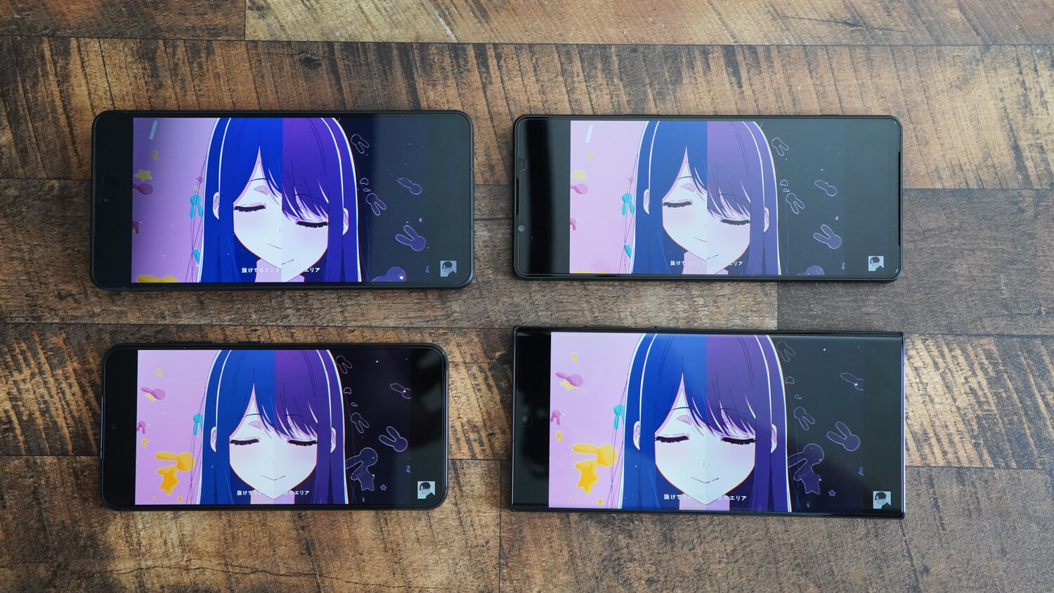あとはXperia 1Ⅴのみベゼル太めのデザインで他の3機種はパンチホールデザインを採用。4機種ともマット仕上げを採用しており質感は高めでカメラデザイン含めて好みが出るところ。