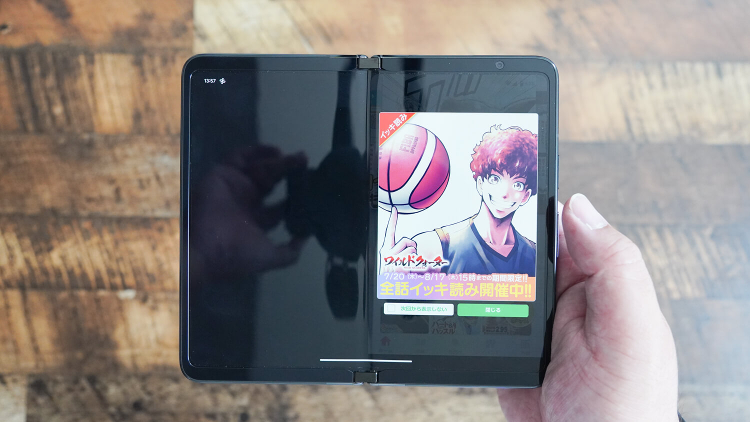 ただ個人的には折畳式機種でマルチタスクでバリバリ使いたいと思っていなかったので特段問題はなくあくまでもコンテンツを大きく表示して楽しみたいにはちょうどいいです。