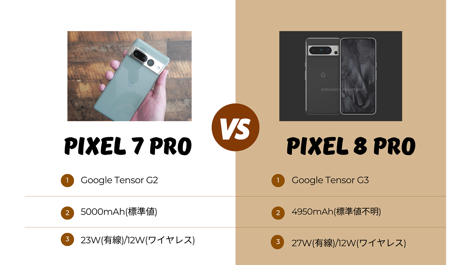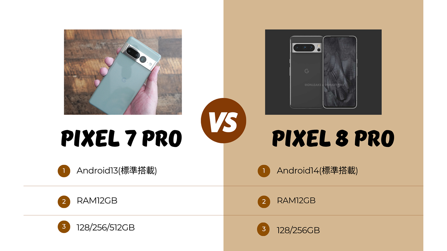 容量構成に関してRAMは一緒ですが今回の情報だとストレージに違いが発生する可能性。アメリカでPiel 7 Proのみ512GBモデルが発売されていますがPixel 8 Proではなくなるのか。