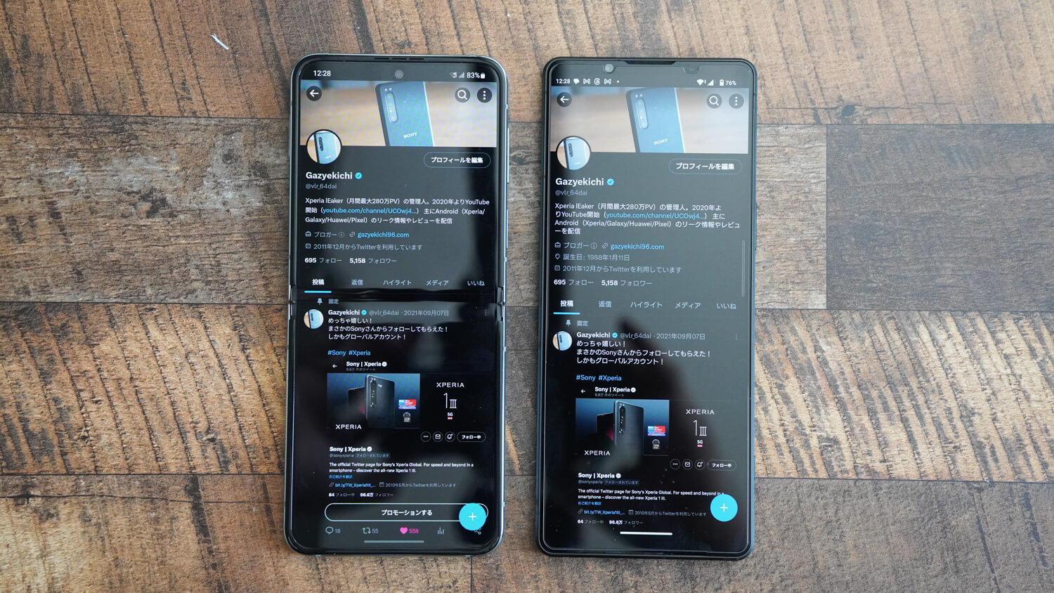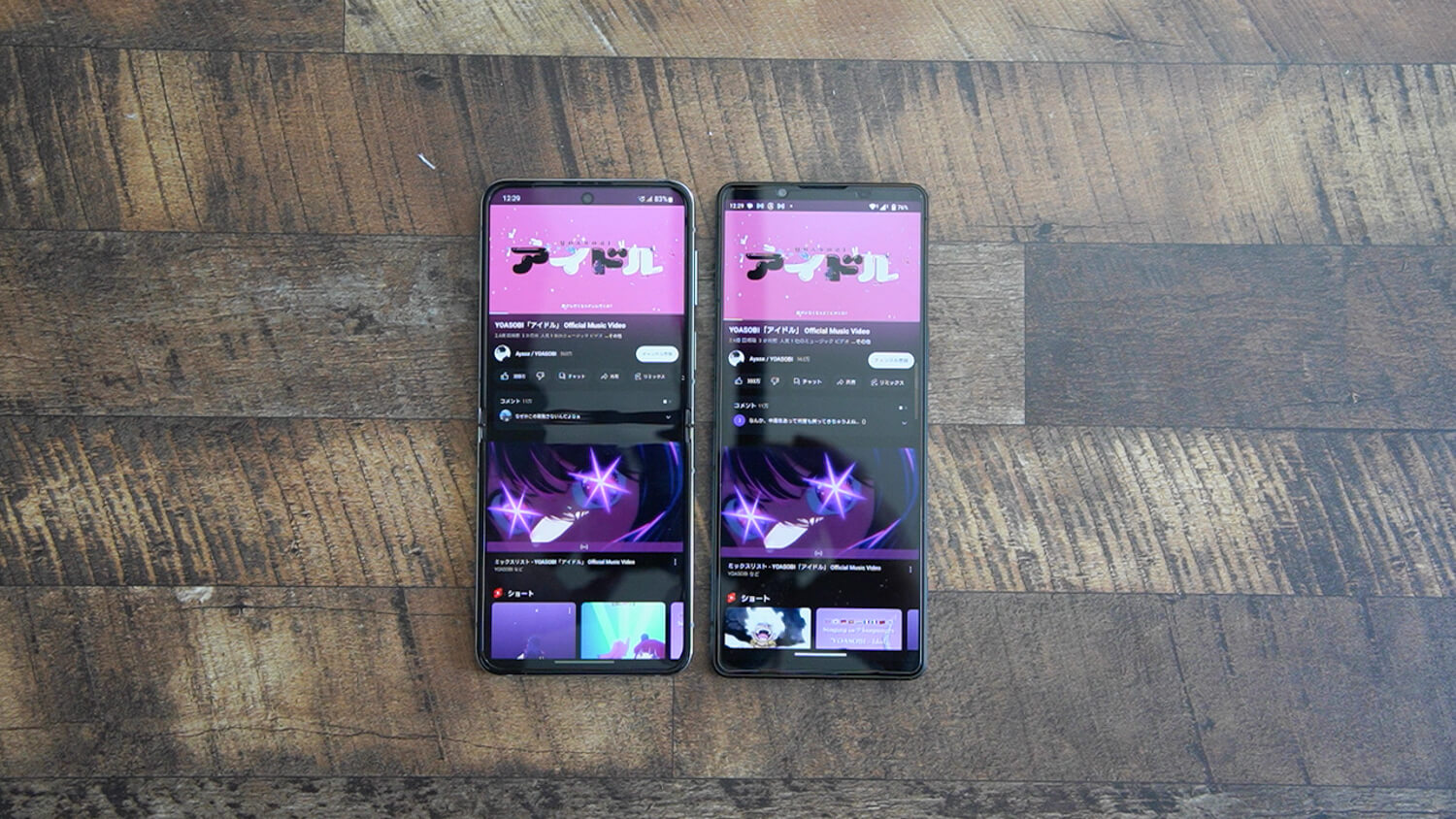 Xperia 1Ⅴと比較するとパンチホールデザインを採用していることでベゼルの部分がディスプレイでより縦長になっている印象で一度に表示できる情報量は多いですがコンテンツは小さく表示されます。