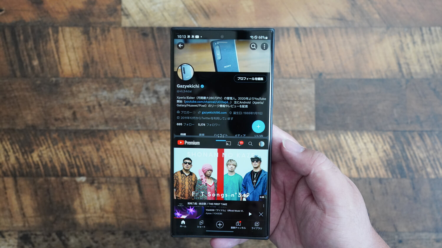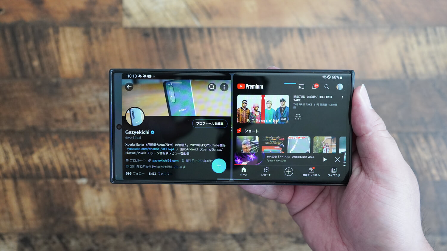 Galaxy S23 Ultraは最大で2分割にすることが可能ですが本体を縦向きにしても横向きにしてもコンテンツ自体の大きさはほとんど一緒という感じで視認性はあまり優れていない印象。