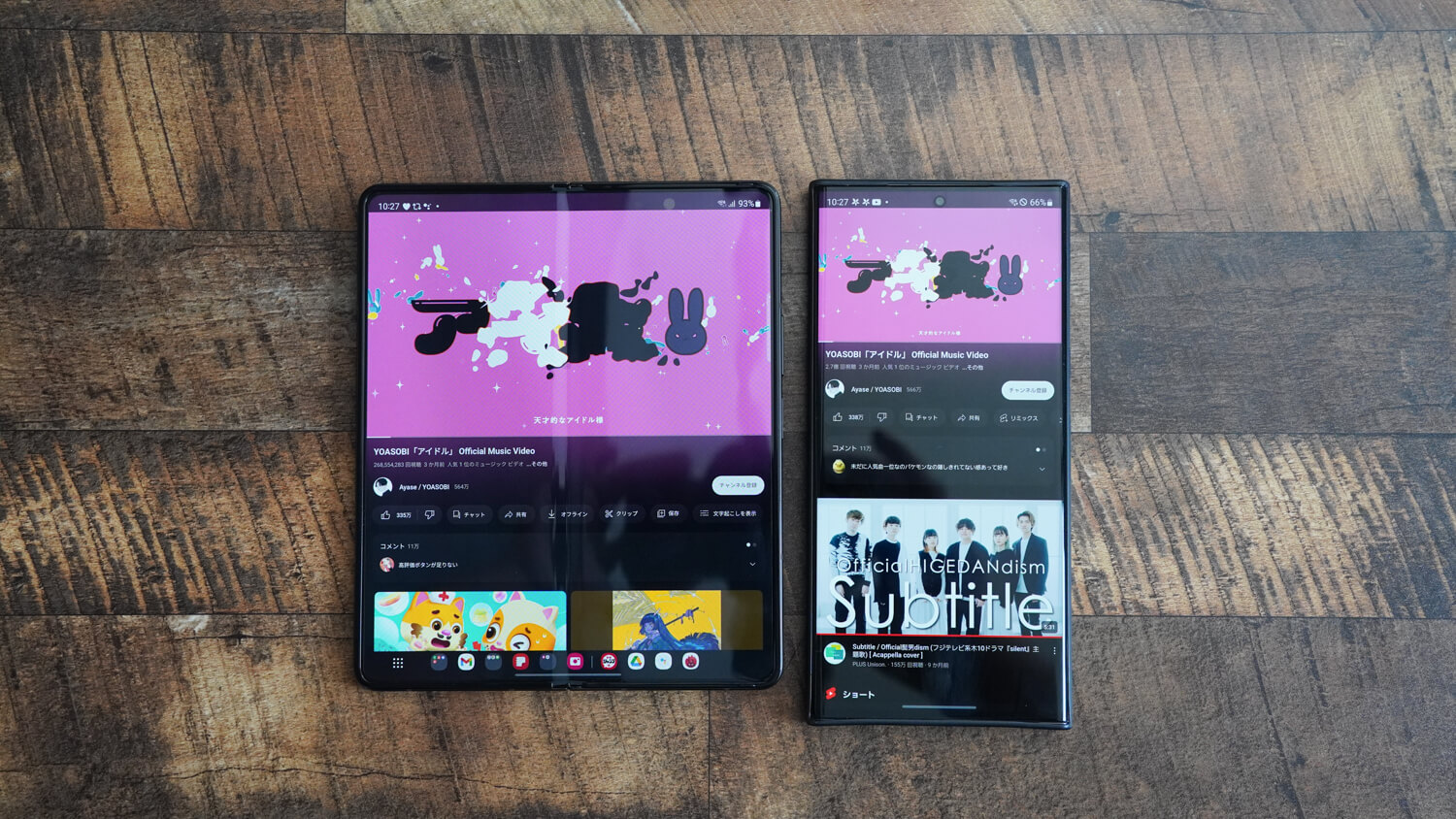 そして逆にGalaxy Z Fold 5の方が優れていると感じる一つ目がコンテンツの表示です。ブック型の折畳式機種を使う上で最大の特徴とも言えるのがコンテンツをより大きく表示できる。